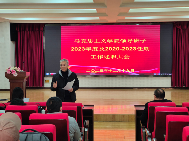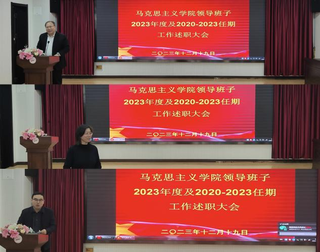 曹胜指出,在紧紧围绕学校、学院中心工作的同时,学院坚持目标导向和问题导向相结合,在各方面取得显著成绩。主要表现为思政课教育教学质量稳固提升、研究生培养体系逐步完善、科学研究显性突破、社会影响不断扩大等。曲慧敏强调,在全体教职工的共同努力下,学院2023年度各项教学任务圆满完成,在教学研究专项等方面获得重大进展。另外,郭江龙从学科建设、科研项目、研究生培养、对外合作等方面进行2023年度的总结汇报。