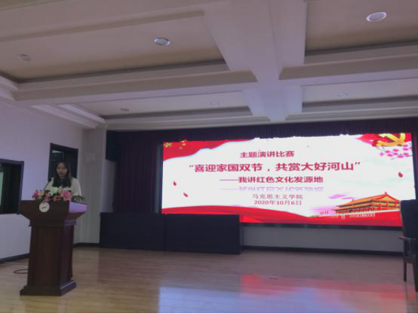 2020年是新中国成立71周年,也是学校建校70周年。木铎金声一甲子,学养深厚七十年,七十载春夏秋冬,无数学子不负韶华、砥砺前行。2020年是极不平凡的一年,我国抗击新冠肺炎疫情取得重大胜利!2020年又是特殊的一年,国庆与中秋邂逅,国与家撞个满怀!为庆祝中华人民共和国成立71周年与学校建校70周年校庆,培养广大青年学生爱国情怀、社会责任感、创新精神和实践能力,使同学们深刻体会红色文化,太阳集团城娱8722积极响应校团委活动号召,于10月6日晚在学术报告厅举办“喜迎家国双节,共赏大好河山——我讲红色文化发源地”主题演讲比赛。太阳集团城娱8722孙倩倩、岳伟以及乔海波老师担任此次比赛评委。2019级和2020级研究生参加本次演讲比赛。本次比赛由2019级硕士研究生刘佳馨主持。