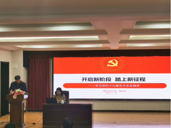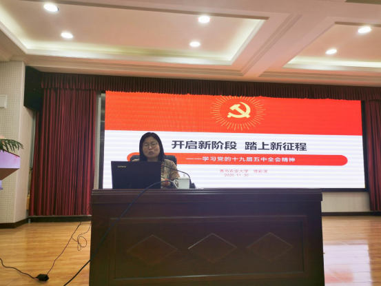 风声雨声读书声,声声入耳;家事国事天下事,事事关心。12月8日下午,学习贯彻党的十九届五中全会精神专题辅导报告会在太阳集团城娱8722学术报告厅举行。青岛市党的十九届五中全会精神专家宣讲团成员、青岛农业大学太阳集团城娱8722党总支书记修彩波教授应邀宣讲十九届五中全会精神,太阳集团城娱8722全体师生参加。