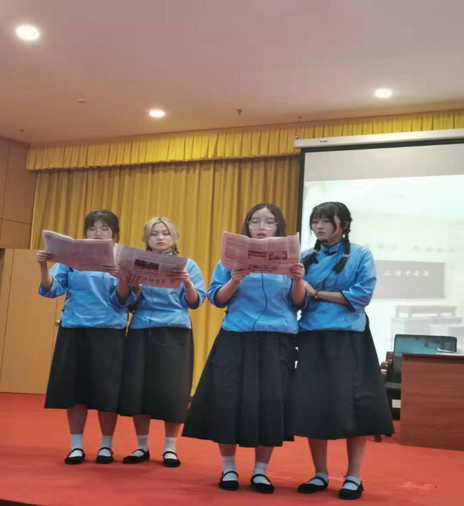 汇演伊始,该课程的任课教师兼展演活动的指导教师张运君教授介绍此次活动的基本情况。此次教学改革成果汇报展演的主体为正在学习“纲要”课程的学生,从编剧到导演、从演员到剧务都由学生独立完成,学生自主分为18个小组,采取历史诗篇朗诵、历史情景剧、历史事件书画、大学生讲思政课、红歌联唱等多种形式来表达对“纲要”课程内容的理解与感受。