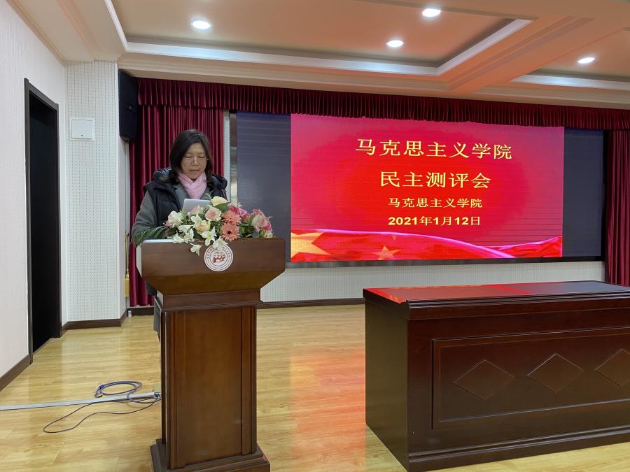 张运君副院长对2020年度工作进行了汇报:第一,思想政治与廉洁自律方面,严格按照要求进行政治理论学习,始终坚持“以人为本”,把学院教师的利益放到第一位,全心全意为老师们服务。第二,科研方面,高层次科研项目有突破,高水平论著论文有增长,科研获奖范围更广,科研团队建设切实推进。第三,研究生培养方面,2020年学院的研究生培养更加注重理论与实践的结合,研究生培养质量正在稳步提升,研究生宣讲工作有特色、有亮点。第四,学科建设方面,学院申报马克思主义理论一级博士点有重要进展,第五轮学科评估正在有序完成。最后,张运君副院长指出要通过以评促建,未来要对研究生的学术交流活动给予更多的政策支持,要加大科研团队建设力度。