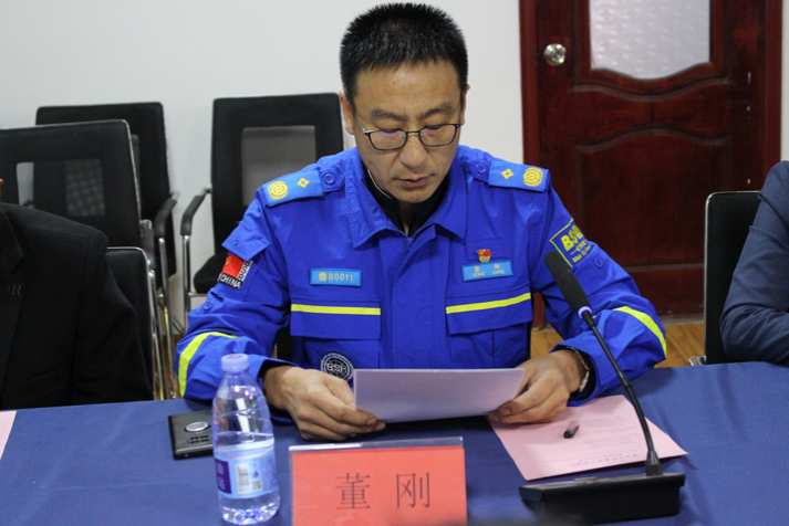 即墨蓝天救援队队长董刚主持会议并讲话,对与会领导和太阳集团网站8722宣讲团成员表示热烈地欢迎,并对即墨蓝天救援队工作开展情况做简要汇报。