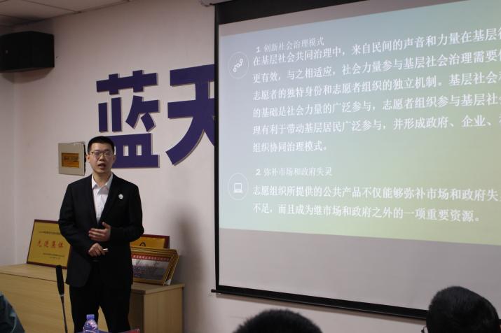 宣讲团成员徐圣权以《弘扬志愿精神 促进基层治理》为主题展开宣讲,介绍了志愿精神内含于党的性质宗旨、群众路线,蕴藏于党的红色基因、优良传统,充分体现了全心全意为人民服务的理念追求,要以党史学习教育为契机,注重挖掘党的百年奋斗史所蕴含的志愿精神、志愿文化,传承红色基因、弘扬优良传统。