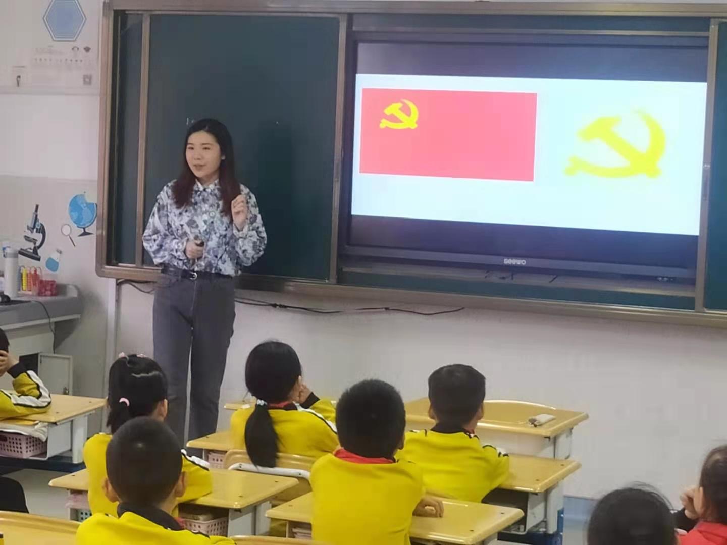 活动现场,育才学校的同学们积极思考,踊跃回答问题,现场气氛十分活跃。宣讲团成员韩新怡通过图片为同学们讲述了党旗、党徽的由来,同时也明确了是中国共产党团结和带领全党全国各族人民实现了民族独立、人民解放,现在正带领着人们实现国家富强、民族振兴和人民幸福。