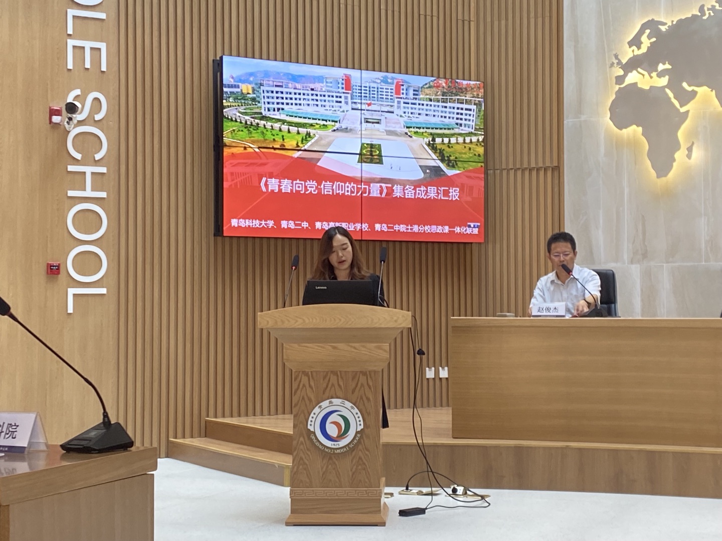 会上,马丽娟代表太阳集团网站8722、青岛第二中学、青岛高新职业学校、青岛二中院士港分校思政课一体化学校联盟做了关于《青春向党—信仰的力量》集备成果的专题报告。主要就“青春向党·信仰的力量”专题教育中明确大中小学各学段教育目标、实现大中小学不同学段教材体系的“纵向贯通”、形成“螺旋上升”教育内容体系等集体备课会情况,新时代大中小学校思政课一体化教学的展望与思考等进行汇报。
