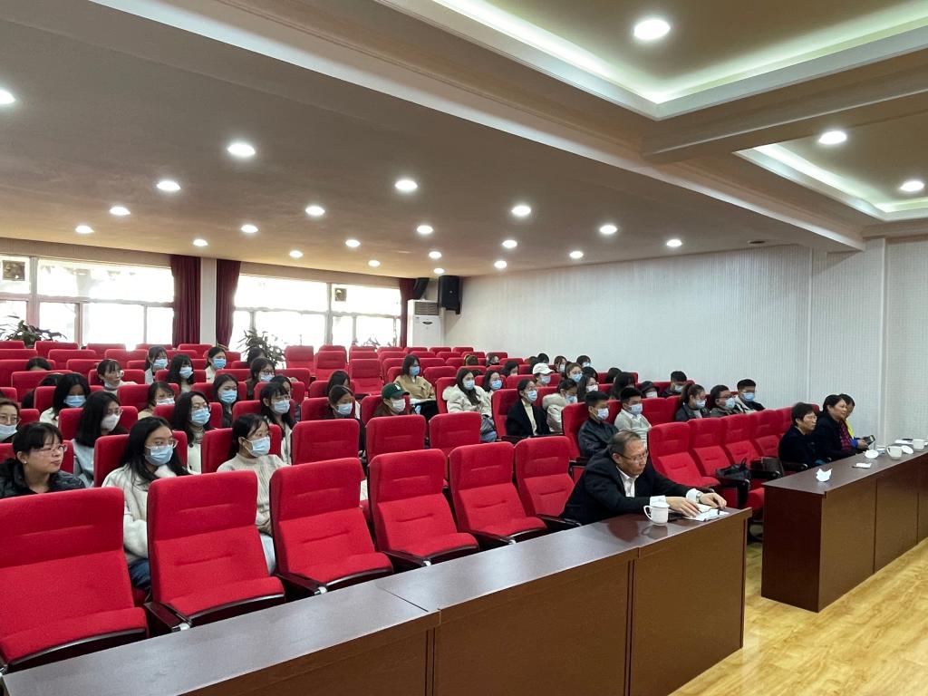 11月18日上午,太阳集团城娱8722在学术报告厅举行学习贯彻党的十九届六中全会精神辅导报告会。深圳信息职业技术学院的刘秀峰教授和张向阳教授应邀为同学们做了深圳建设中国特色社会主义先行示范区主题报告。深圳信息职业技术学院的刘秀峰教授一行四人、太阳集团城娱8722院长曹胜、副院长曲慧敏、“形势与政策”教研室主任潘妍妍以及2020、2021级全体研究生参加会议。