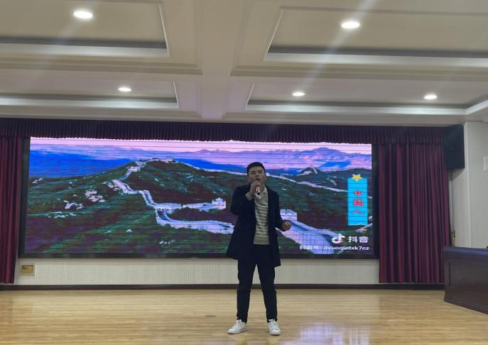 杨志国为大家带来一首豪迈的《中国人》。他自信的歌声响彻整个报告厅。