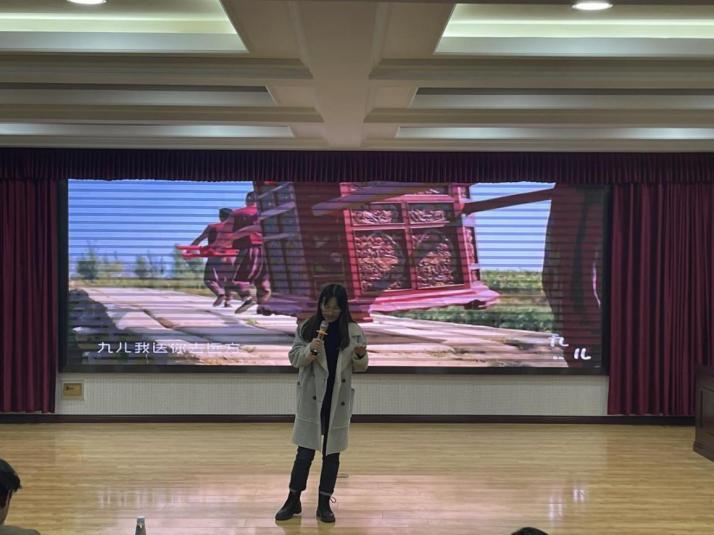 张迪为大家带来了歌曲《九儿》。几代人的奋斗和牺牲才换来了今天的生活,热爱生活、珍惜和平的感悟在同学们心中回荡。