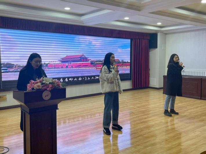 高梦琳、辛泽华和匡秀钰为同学们献唱了歌曲《明天会更好》,歌声唱出了她们的热情,唱出她们拥抱梦想的信心。