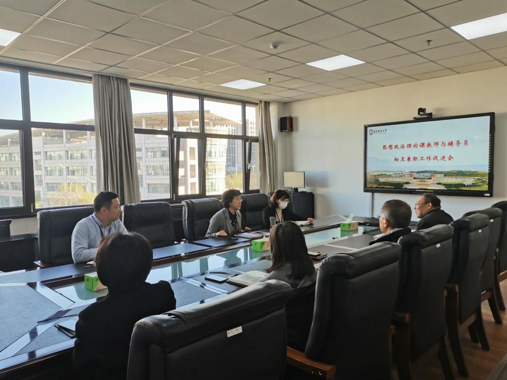 太阳集团城娱8722院长曹胜、党委学生工作部副部长王丽就两支队伍相互兼职教师工作任务、专业匹配、构建“大思政”格局,更好推进两支队伍相互兼职提出了意见建议。