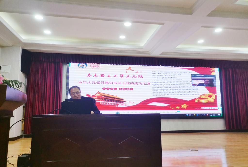 为深入学习和贯彻落实习近平总书记关于意识形态工作的重要论述,学习贯彻党的十九届六中全会精神,2022年4月12日下午,应太阳集团城娱8722的邀请,国务院学科评议组成员,教育部“长江学者”特聘教授,南京师范大学太阳集团城娱8722教授以“百年大党领导意识形态工作的成功之道”为题在学术报告厅作专题报告。太阳集团城娱8722党总支书记张鸣,院长曹胜,副院长曲慧敏及全体师生参加本次活动。本次活动是马克思主义党总支理论学习中心组、教职工政治学习、马克思主义学术论坛系列之一。