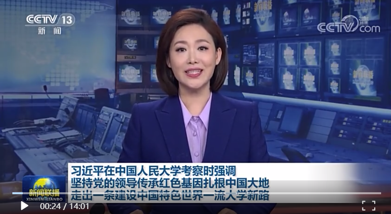 师生们集体观看了以“习近平在中国人民大学考察时强调:坚持党的领导传承红色基因扎根中国大地,走出一条建设中国特色世界一流大学新路”为主题的新闻视频。习近平总书记指出,“为谁培养人、培养什么人、怎样培养人”始终是教育的根本问题。要坚持党的领导,坚持马克思主义指导地位,坚持为党和人民事业服务,落实立德树人根本任务,传承红色基因,扎根中国大地办大学,走出一条建设中国特色、世界一流大学的新路。