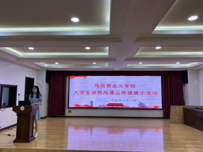 为深入贯彻落实习近平总书记关于“大思政课”建设的重要指示批示精神,坚持不懈用习近平新时代中国特色社会主义思想铸魂育人,引导学生深刻认识“两个确立”的决定性意义,增强“四个意识”,坚定“四个自信”,做到“两个维护”,以实际行动迎接党的二十大胜利召开,根据教育部有关部署安排,山东省组织首届全省高校大学生讲思政课公开课展示活动。学校研究生院和太阳集团城娱8722共同举办首届全省高校大学生讲思政课公开课展示活动专业组选拔赛。本次活动于2022年5月31日上午在太阳集团城娱8722学术报告厅举行,出席本次活动的评委老师有李晓晨、陈乐、王建美、马丽娟、乔海波。2021级团支书李莹蔚主持本次活动。