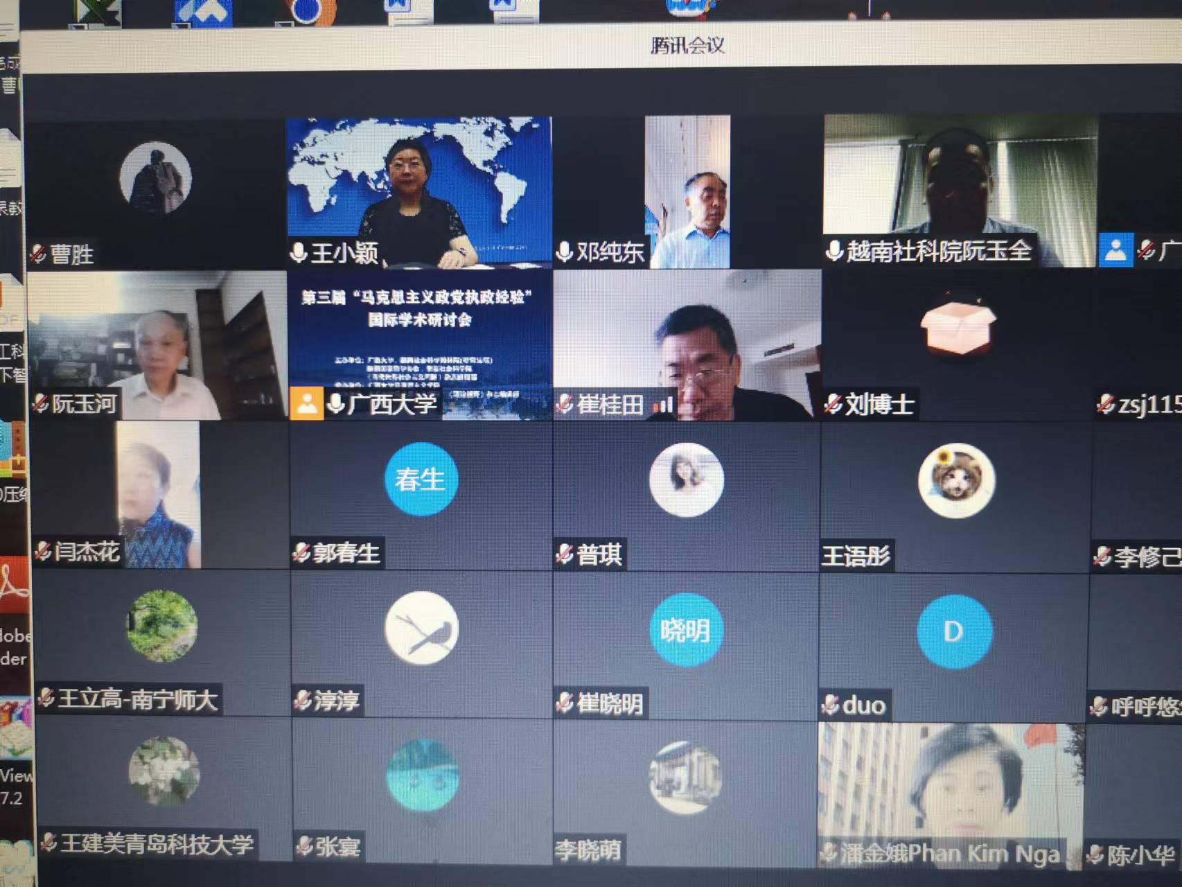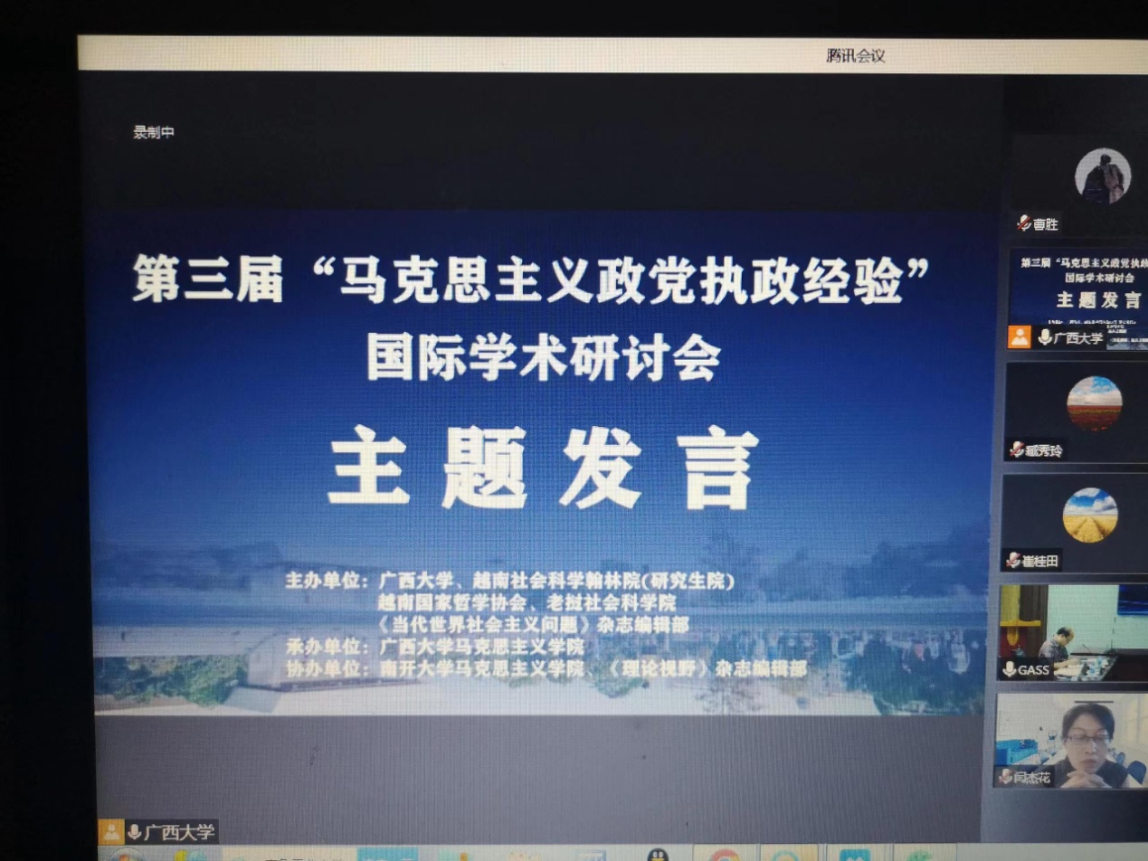 2022年7月20日,由广西大学、越南社会科学翰林院(研究生院)、越南国家哲学协会、《当代世界社会主义问题》编辑部联合主办,南开大学太阳集团城娱8722、《理论视野》杂志编辑部协办,广西大学太阳集团城娱8722承办的第三届“马克思主义政党执政经验”国际学术研讨会,在广西大学太阳集团城娱8722隆重举行。太阳集团城娱8722各教研室组织全体师生参会。