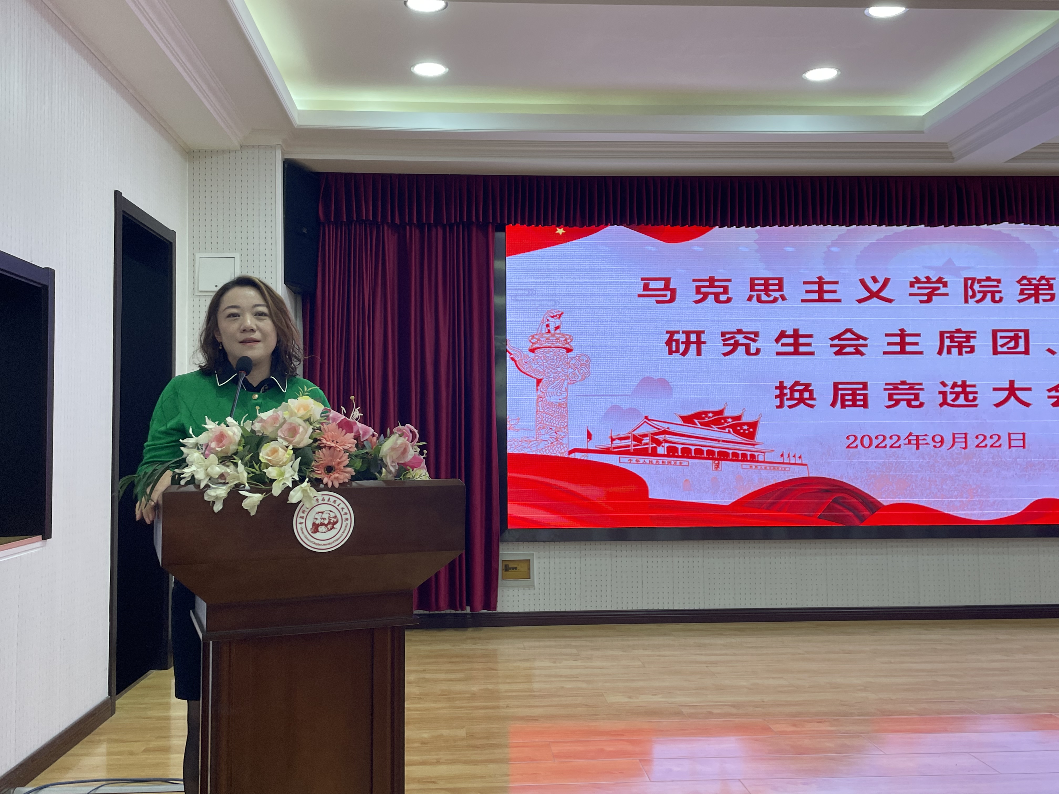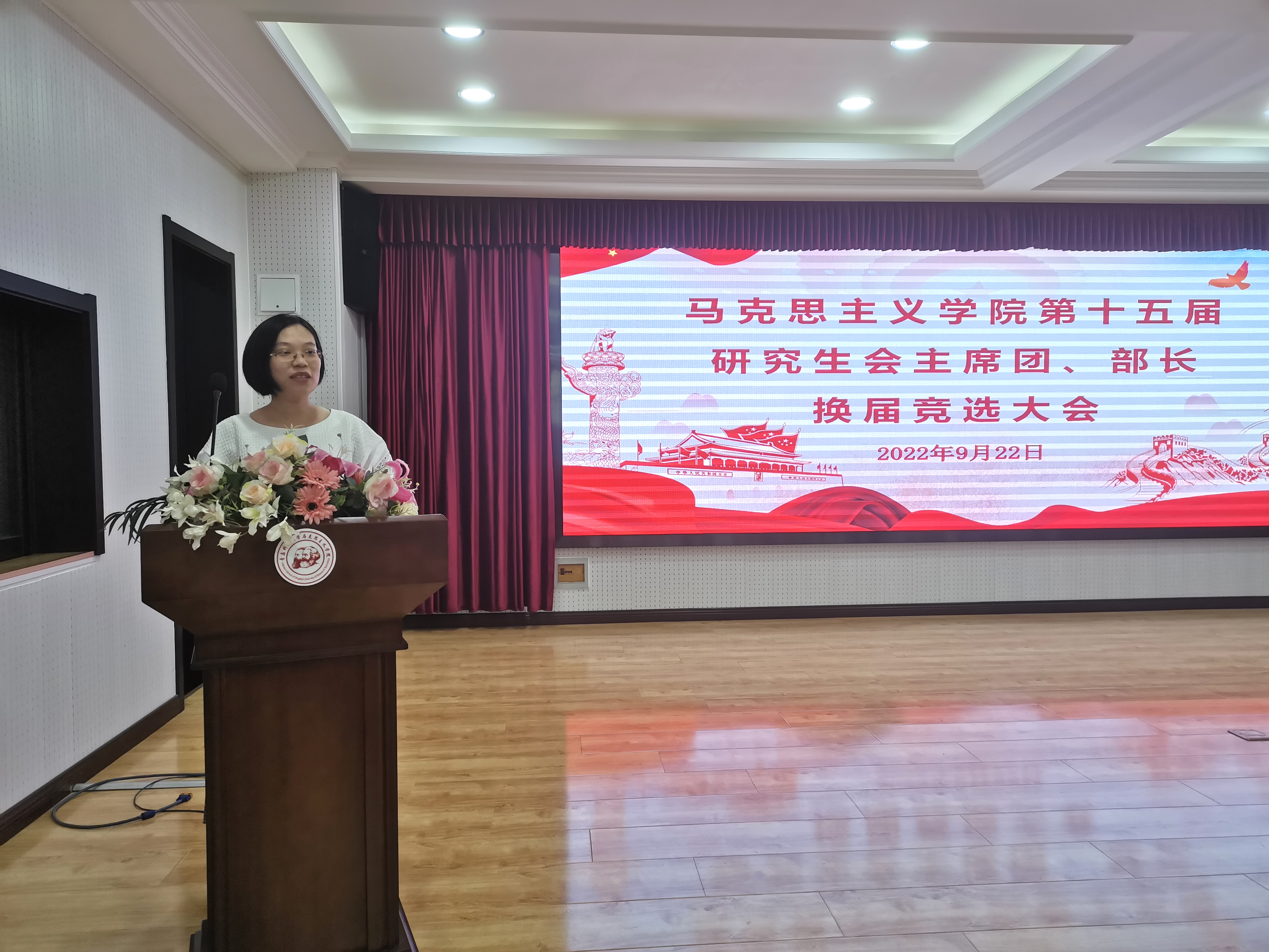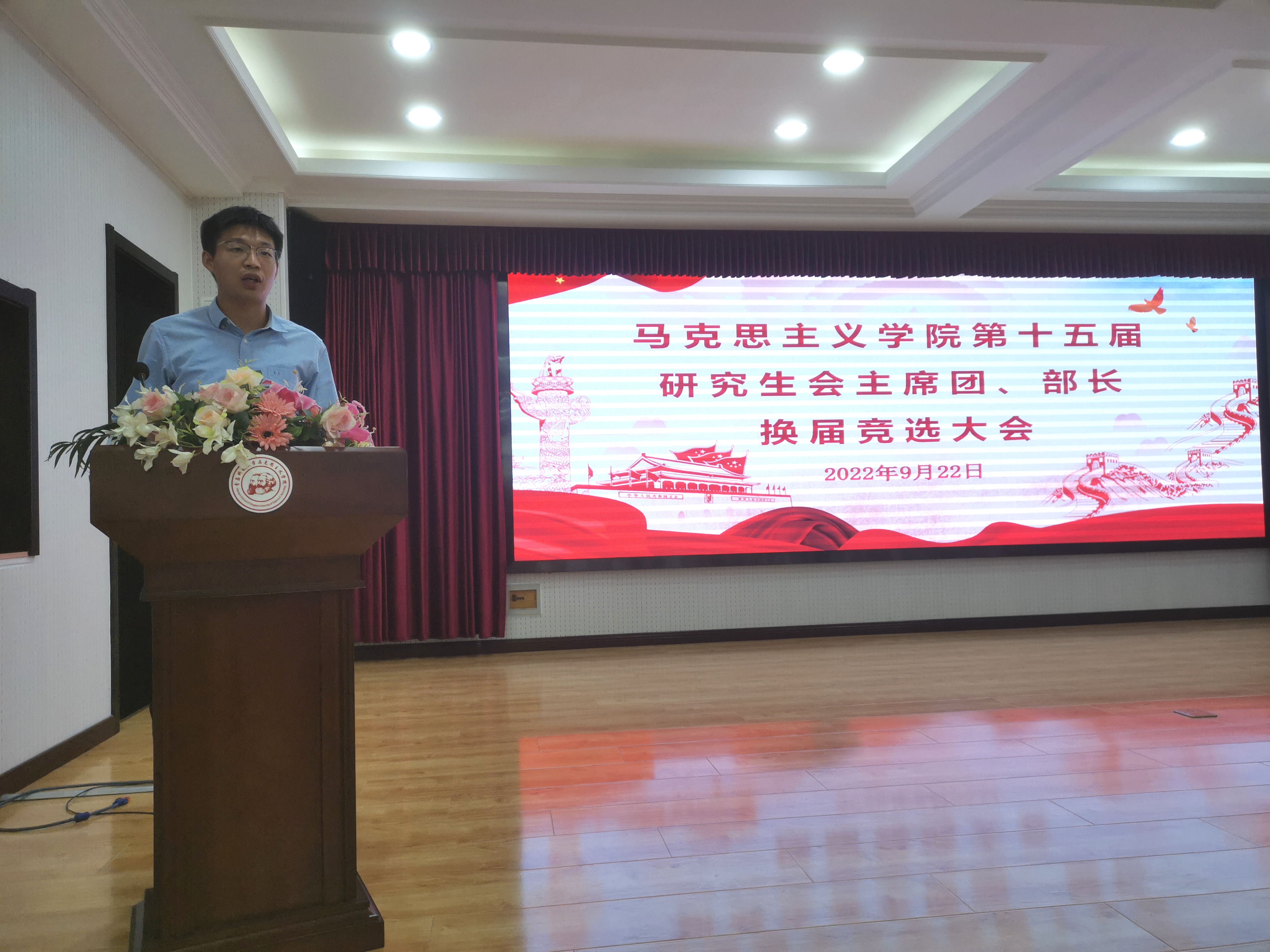 2022年9月22日下午,太阳集团城娱8722在学院报告厅举行第十五届研究生会主席团、部长换届选举大会。2020级班主任孙倩倩、2021级班主任潘妍妍及第十四届研究生会主席团成员,各部部长、干事参加此次会议。本次会议由第十四届研究生会主席王宇主持。