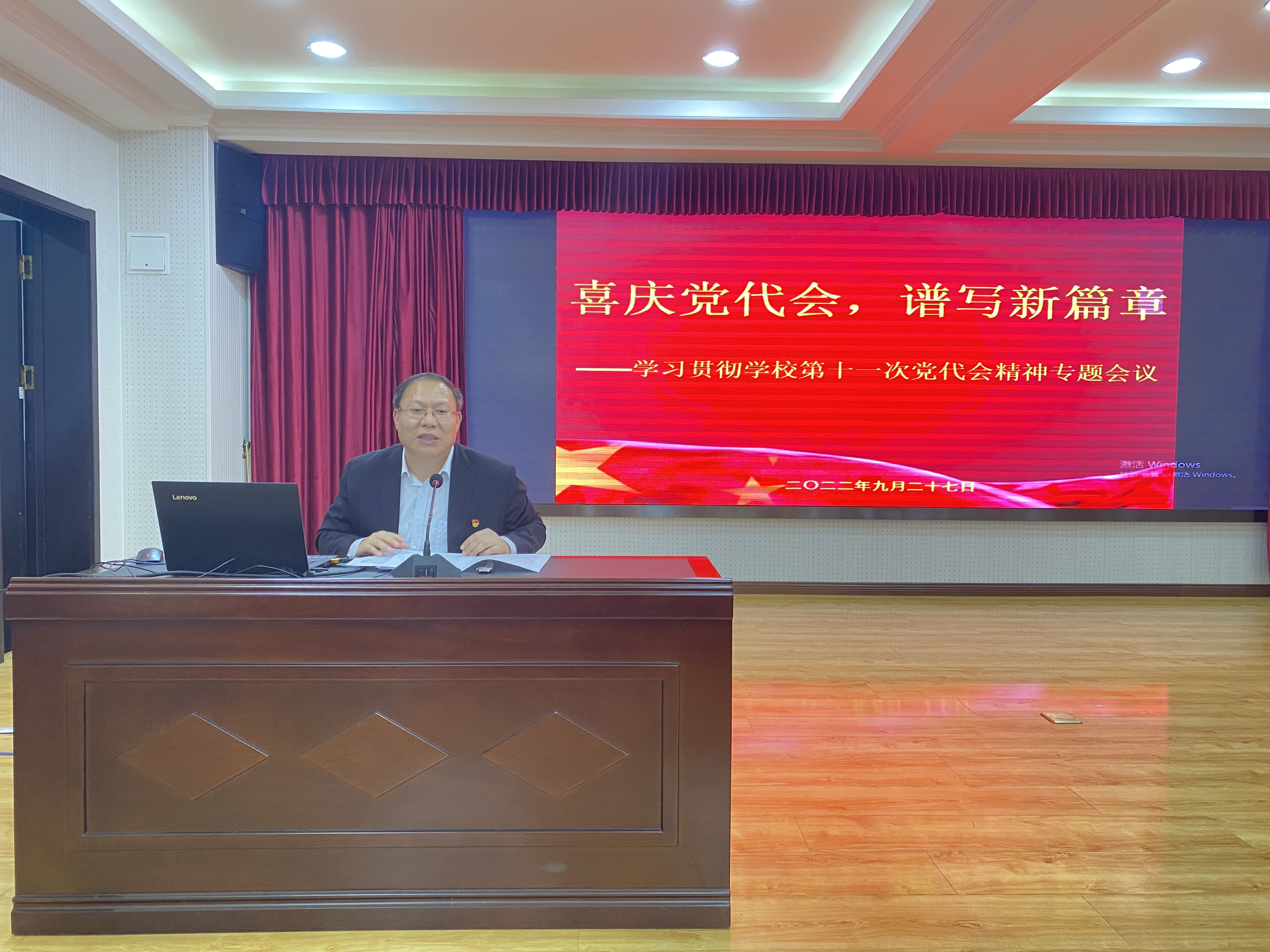 为深入学习学校第十一次党代会精神,9月27日下午,太阳集团城娱8722举行“喜庆党代会,谱写新篇章——学习贯彻学校第十一次党代会精神”专题会议,太阳集团城娱8722全体师生参加会议,党总支书记张鸣主持会议。