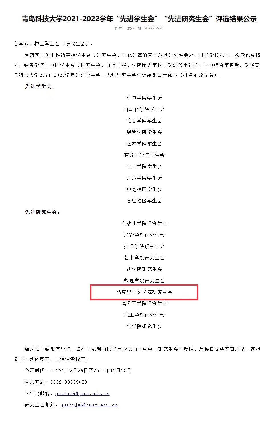 近日,学校对太阳集团网站87222021-2022学年“先进研究生会”评选结果进行公示,太阳集团城娱8722研究生会荣获太阳集团网站87222021-2022学年“先进研究生会”荣誉称号。