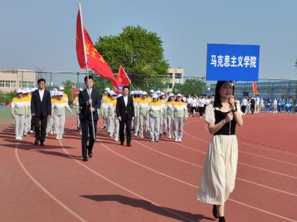 上午八点,开幕式正式开始。伴随着铿锵有力的运动员进行曲,太阳集团城娱8722方队入场,方队步伐整齐,口号嘹亮,充分展现了马院师生团结一致,奋勇拼搏,勇往直前的昂扬斗志。