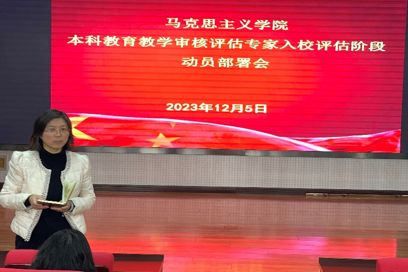 会议伊始,曲慧敏传达了学校本科教育教学审核评估专家入校评估动员阶段动员部署会议精神和相关要求。最后,曹胜强调本次专家入校评估工作的重要性,要求各部门和全体教师高度重视,积极行动,以优良风貌迎接专家入校评估工作。