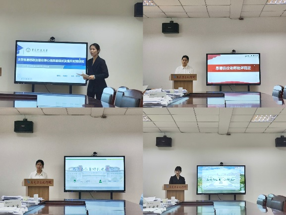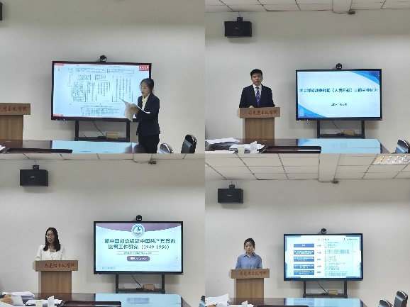 中国近现代史基本问题研究、思想政治教育方向的答辩会在2010室举行。副院长郭江龙介绍了答辩委员会委员成员及答辩流程。参加论文答辩的研究生崔晓雨、房佳、姜亚萍、李沁、刘欣欣、钱美彤、孙逸菲、王婷婷、吴紫薇、辛泽华、杨志国、张迪、张璐璐、张文盛、张宇晴、庄宁、左娟分别就论文的选题背景、研究方法、主要内容及创新之处等展开汇报。各位专家从行文逻辑性、表述准确性等方面出发,提出了修改建议及相关问题。随后答辩学生对各位专家提出的问题进行回答。最后,答辩委员会对研究生的论文进行表决评选。