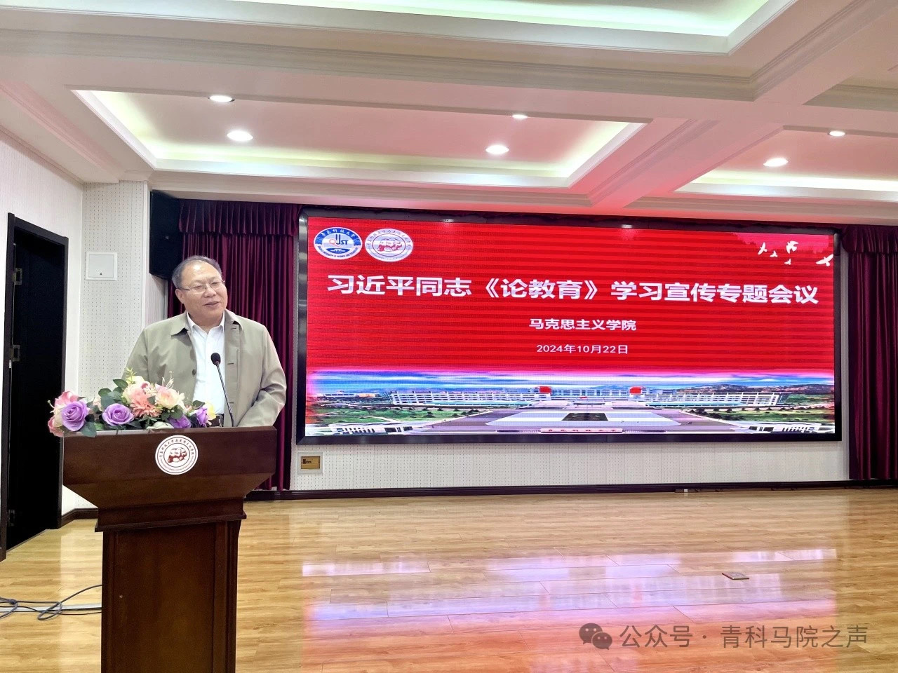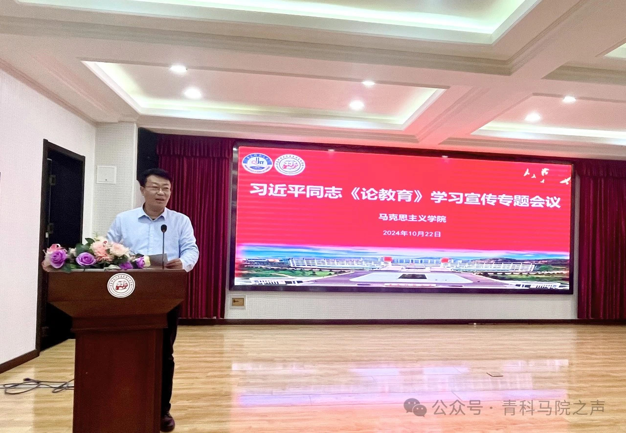副院长郭江龙重申了本次《论教育》主题学习会议的重要性,并对过往学院专题教育工作成果进行总结。他强调,要把习近平同志《论教育》作为一项重大政治任务,持之以恒学思践悟,坚持用习近平总书记关于教育的重要论述指导武装头脑、指导工作实践,助力学院高质量发展。