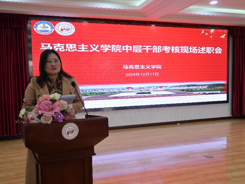 郭江龙副院长结合分管学生及宣传工作实际,从学科建设、研究生培养、科研项目、对外合作等方面进行述职汇报,指出学院研究生培养质量正在稳步提升,博士点培育工作稳步推进。王建美副院长结合分管教学工作实际,对学院2024年度教学任务进行述职汇报,指出学院思政课教师师资队伍建设、教学改革和课程建设、“大思政课”建设等方面获得重大进展,学院育人实效显著提升。