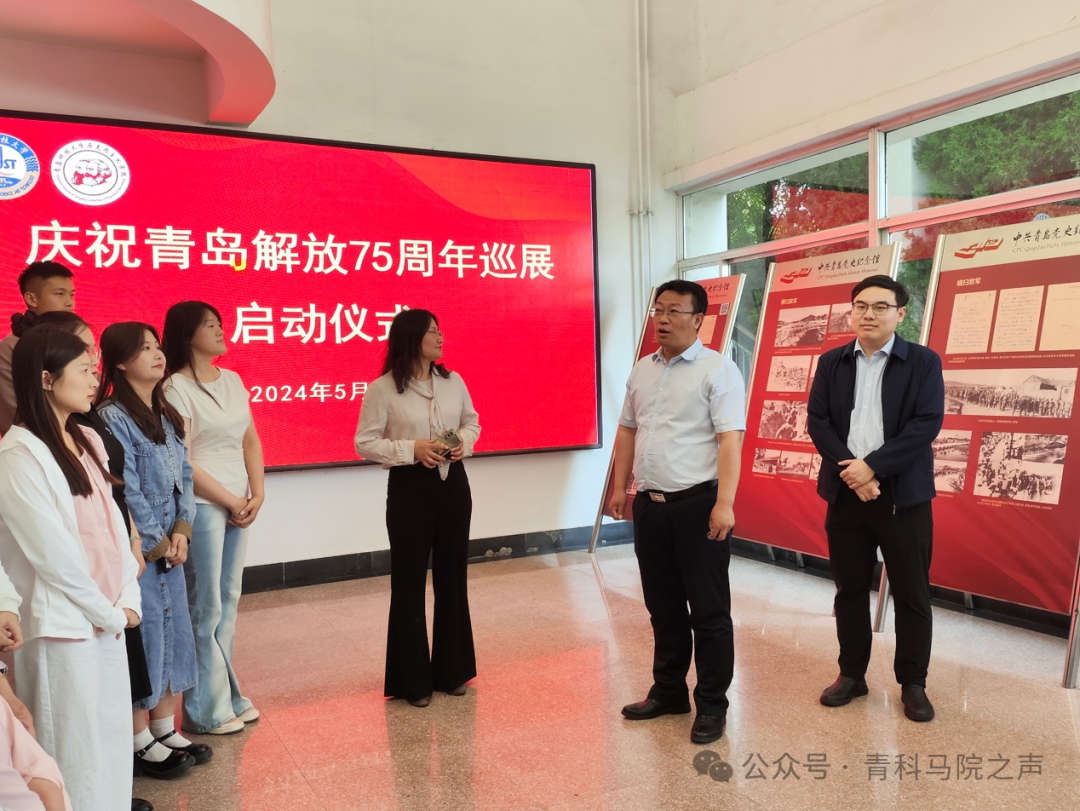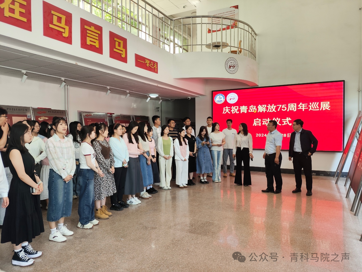 为落实落细习近平总书记关于“大思政课”的重要指示,引导马院学子传承红色文化,进一步了解青岛变迁历史,庆祝青岛解放75周年巡展启动仪式于5月28日在太阳集团城娱8722学术报告厅成功开展。仪式由太阳集团城娱8722党总支书记李真主持,副院长王建美、郭江龙出席, 2022级、2023级全体研究生参加此次仪式。