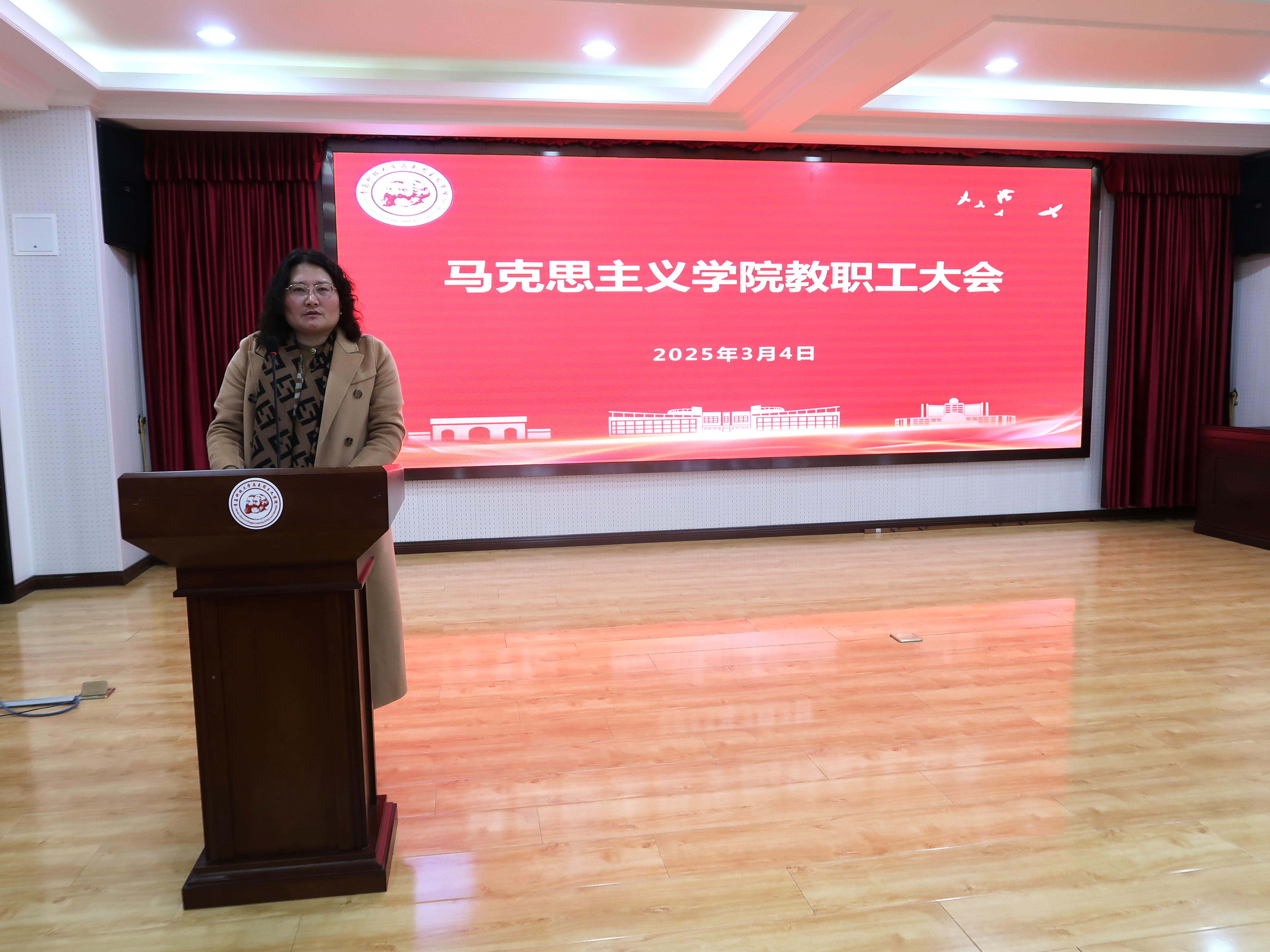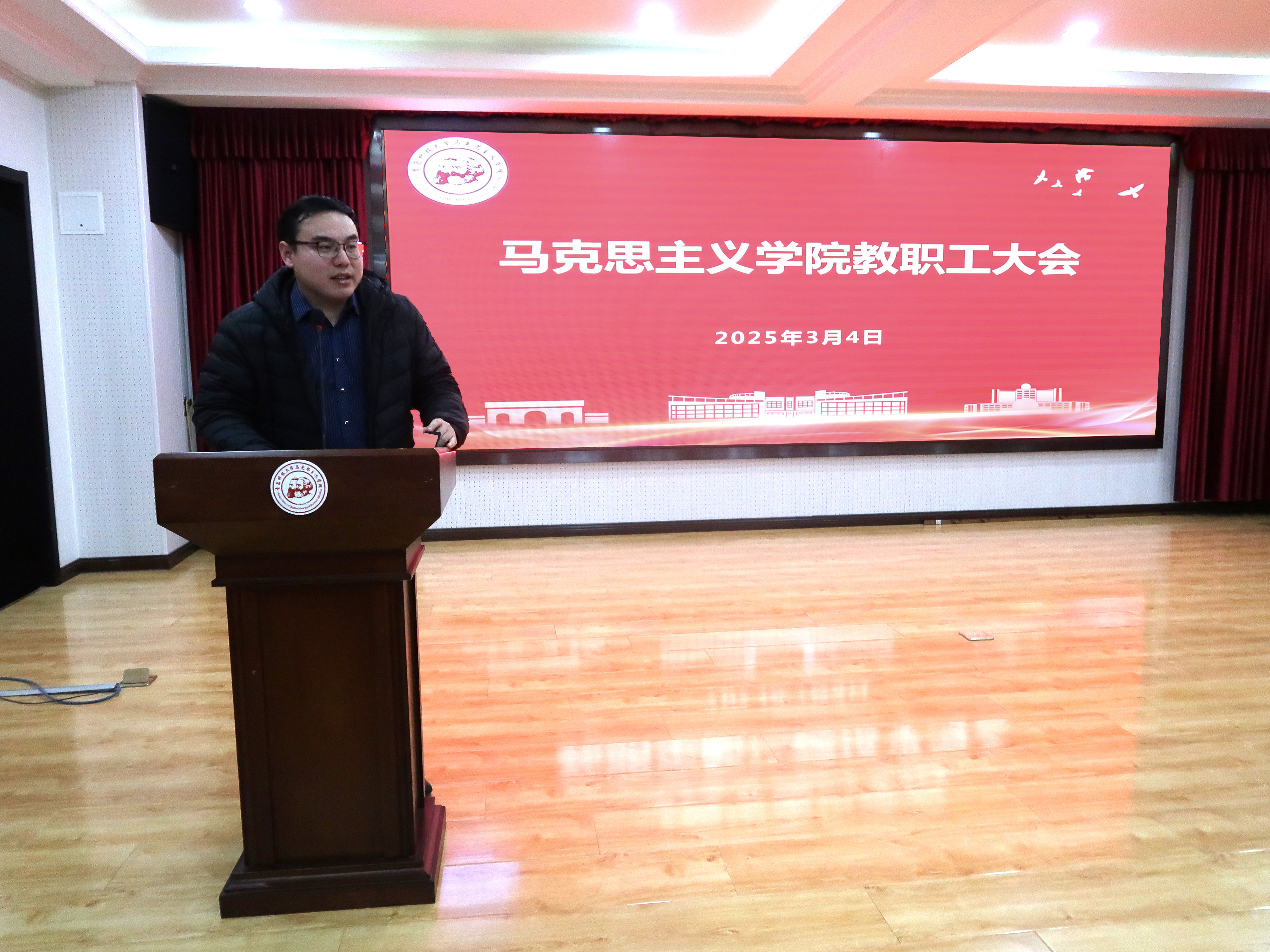 副院长郭江龙、王建美分别就研究生、科研、教学工作进行安排部署。郭江龙分析了2025年研究生招生、预答辩安排及社科基金申报,强调学科竞赛的重要性。王建美结合近期教学情况,指出教师教学过程中存在的问题与不足,并着重强调数智技术融入思政课堂的重要性。
