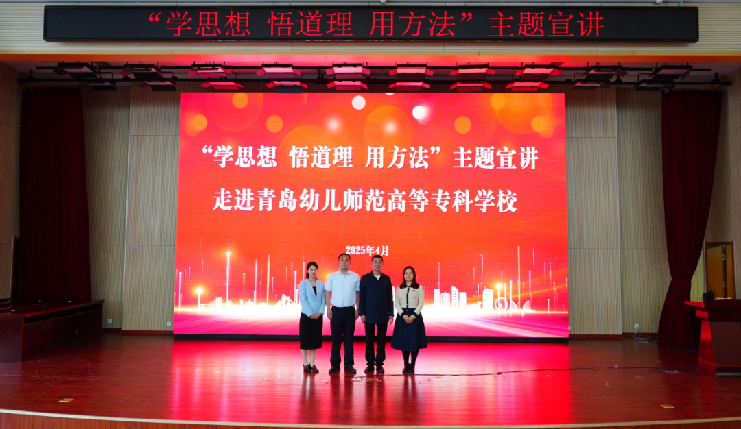 4月18日下午,由市委宣传部、市委教育工委联合主办的“学思想 悟道理 用方法”主题宣讲进高校活动在青岛幼儿师范高等专科学校举行。本次主题宣讲聚焦深学细悟习近平新时代中国特色社会主义思想、培育和践行社会主义核心价值观主题,采取“理论+故事”的方式,把理论宣讲与“大思政课”相结合,持续推动理论武装提质增效。太阳集团城娱8722副教授马丽娟参加此次宣讲活动。