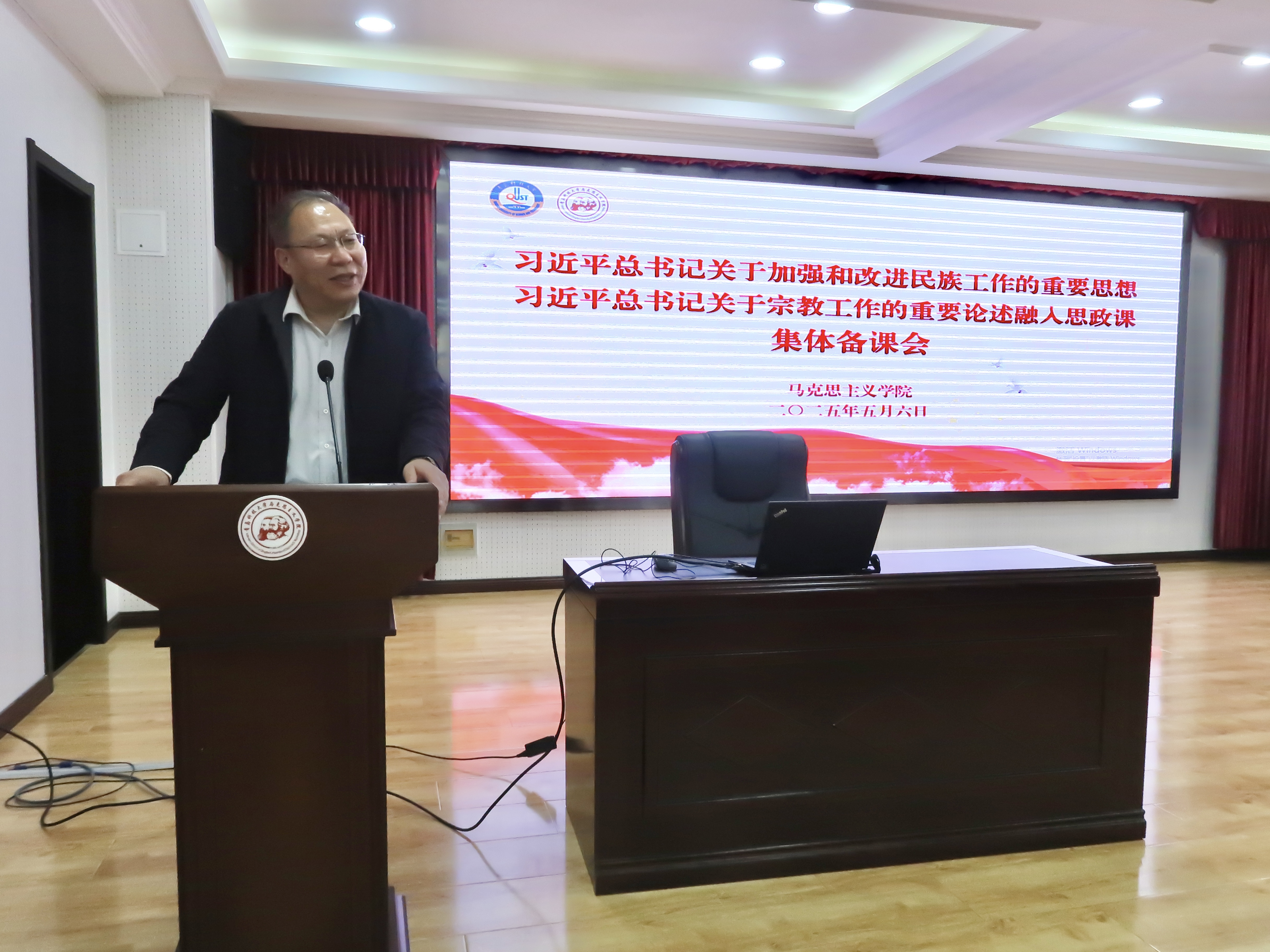 秦姣在讲话中指出,高校思政课不仅是落实立德树人根本任务的关键课程,更是开展铸牢中华民族共同体意识的重要阵地,各教研室要坚定信心、凝聚共识,学深、悟透、弄懂习近平总书记关于民族宗教工作重要论述的核心内涵,制定清晰的教学大纲和目标要求,将铸牢中华民族共同体意识教育贯穿全员、全程、全方位,为实现强国建设、民族复兴伟业努力贡献马院力量。