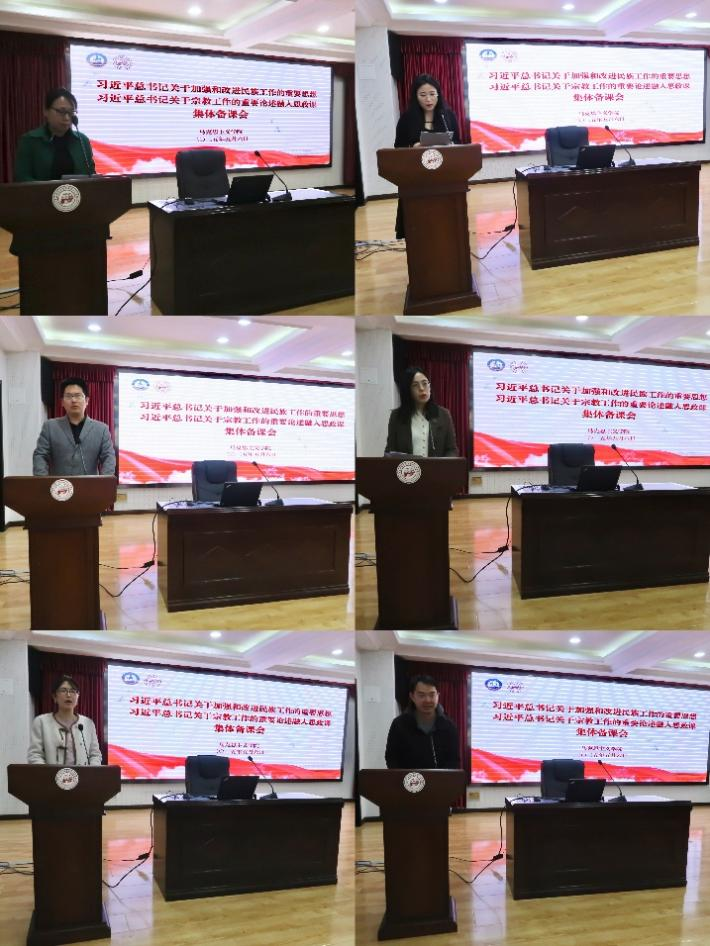 专题研讨环节,各位教师代表围绕马克思主义基本原理、毛泽东思想和中国特色社会主义理论体系概论、习近平新时代中国特色社会主义思想概论、思想道德与法治、中国近现代史纲要、形势与政策等不同课程交流发言,深入探讨了将民族宗教教育内容融入思政课程的有效路径。