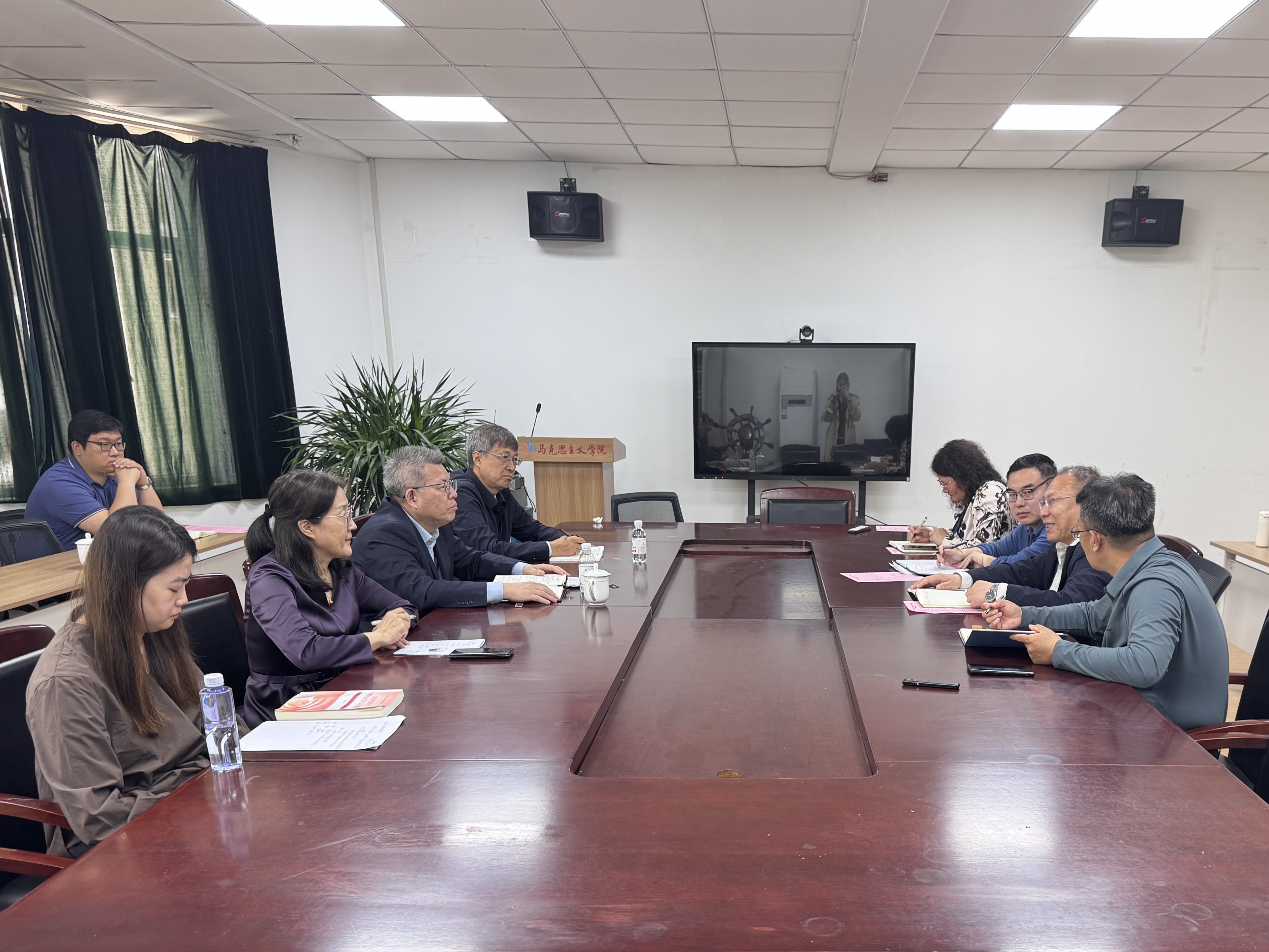 会后,杨天梅与所联系思政课教师亲切座谈,了解教师思想状况,分析思政课建设成效与问题,对教学工作进行指导。