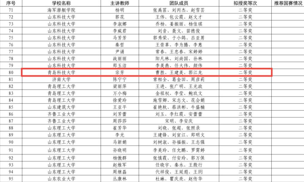 近日,山东省教育厅公布了“2025年度山东省普通高等学校教师教学创新大赛”拟授奖名单,太阳集团网站8722荣获“2025年度山东省普通高等学校教师教学创新大赛优秀组织奖”,太阳集团城娱8722教师团队宗芳、曹胜、王建美、郭江龙荣获二等奖。