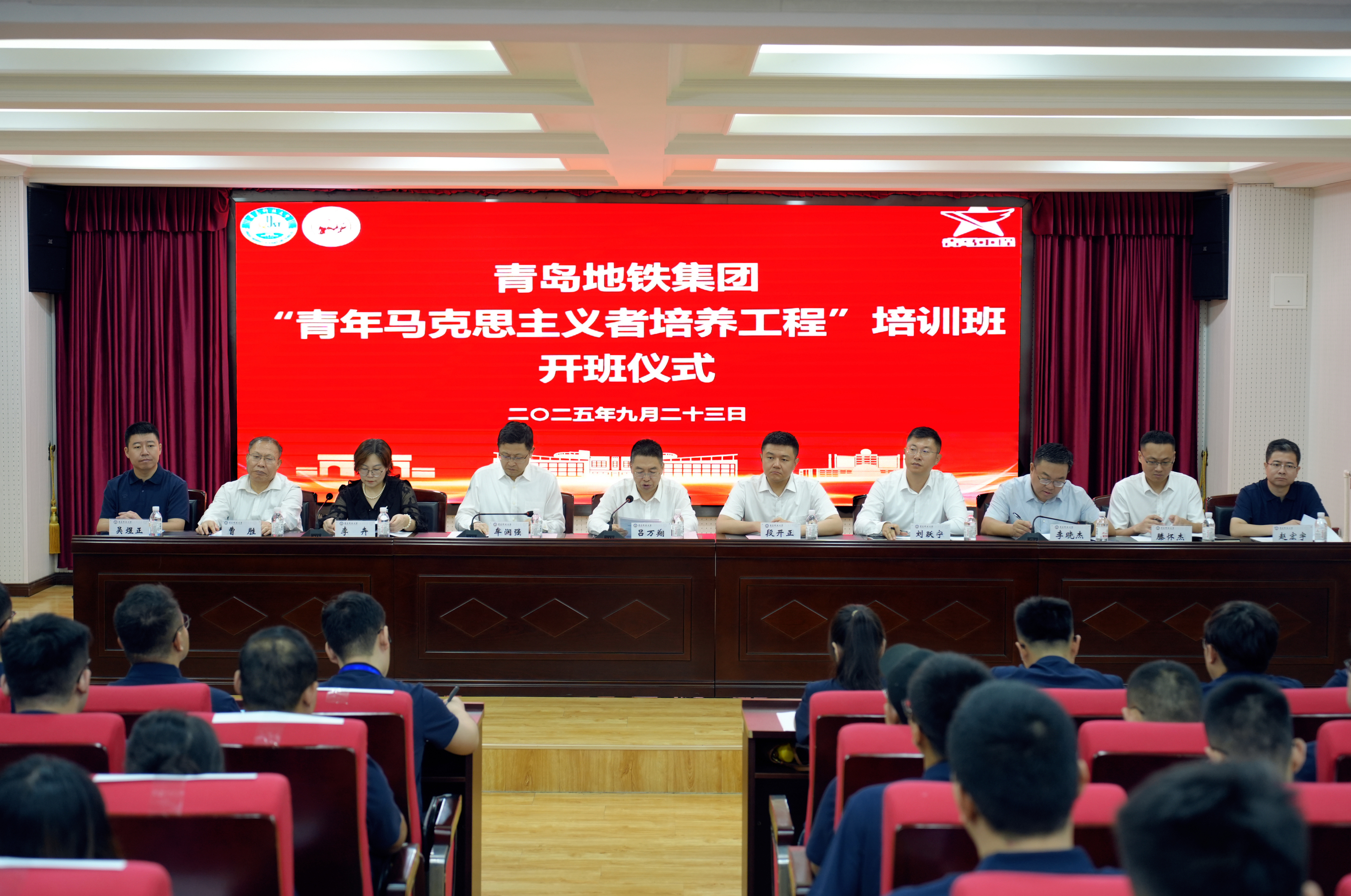 9月23日上午,青岛地铁集团2025年“青年马克思主义者培养工程”(以下简称“青马工程”)培训班开班仪式在太阳集团城娱8722报告厅成功举行。太阳集团网站8722党委常委、副校长吕万翔,共青团青岛市委副书记段开正,青岛地铁集团党委委员、纪委书记牟润强,太阳集团网站8722团委书记刘跃宁,太阳集团城娱8722党总支书记李卉,太阳集团城娱8722党总支副书记、院长曹胜及地铁集团组织人事部、团委、青铁教育咨询公司相关负责同志出席仪式,本次培训班50名学员参加。开班仪式由青岛地铁集团总经理助理、团委书记李晓杰主持。