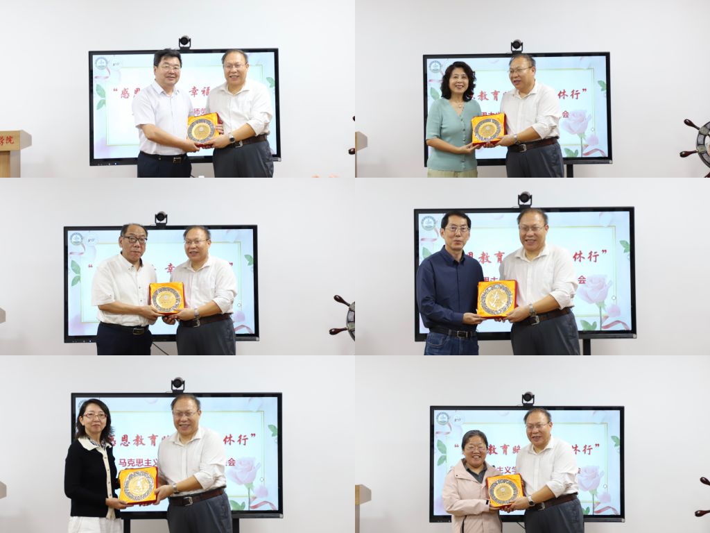 曹胜高度肯定了六位荣休教师在数十年辛勤耕耘、潜心教书育人中取得的成绩,并代表学院向他们致以最诚挚的敬意与深切祝福。曹胜表示:莫道桑榆晚,为霞尚满天,青春永不散,家国情怀在心间,开启新阶段,希望荣休教师继续关心支持学院工作,为学院事业发展建言献策、贡献力量。作为新时代思政课教师,要大力弘扬教育家精神,传承荣休教师们敬业奉献的职业操守、勇于创新的进取精神、忠诚干净担当的政治品格,接过立德树人的接力棒,在教书育人的征程上砥砺深耕。要传承他们潜心治学的优良作风,深耕教学研究前沿,持续深化思政课改革创新;赓续他们爱生如子的大爱情怀,以心育心、以情化情培育时代新人,争做学生成长路上的终身引路人。