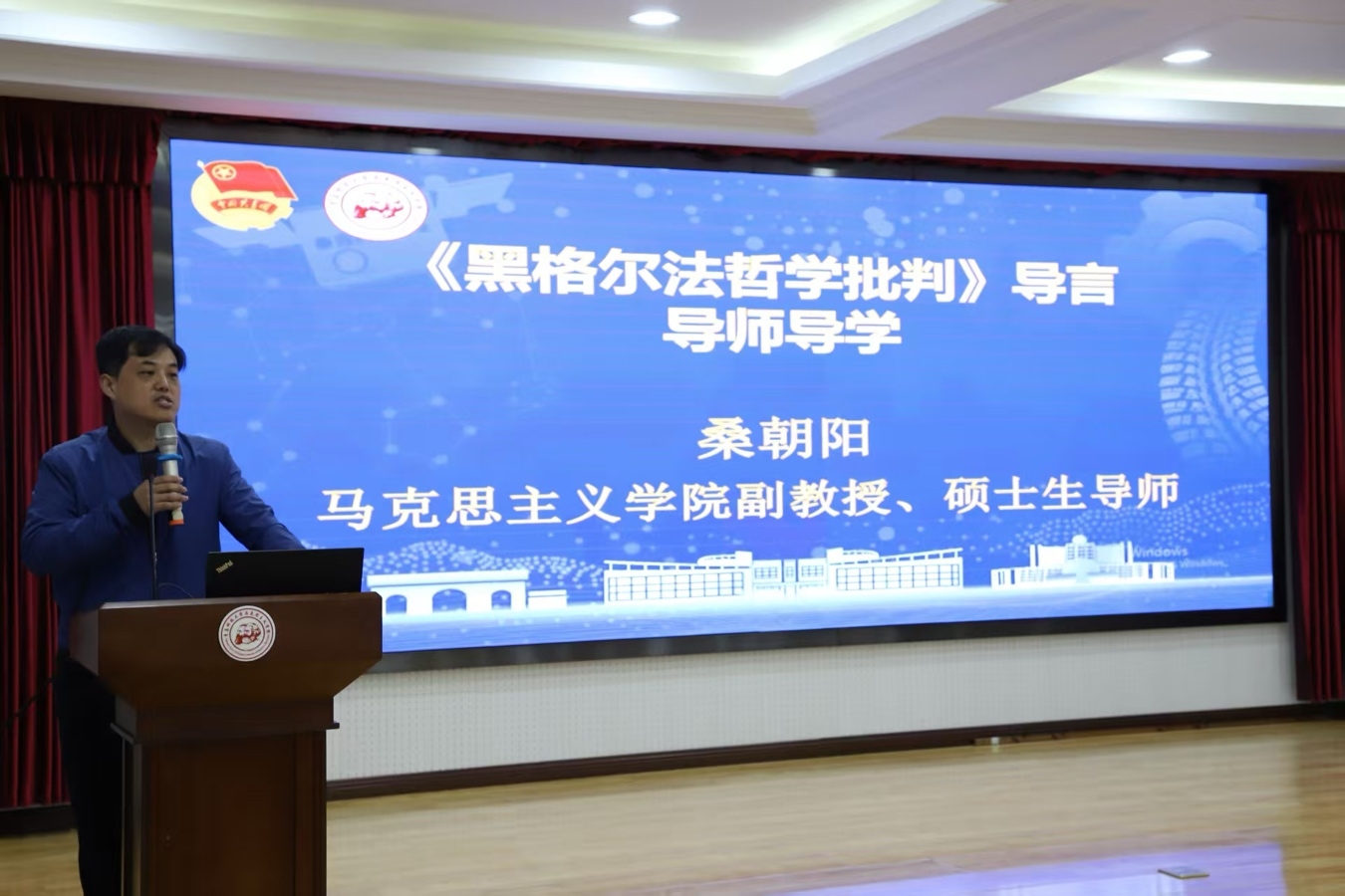10月21日下午,太阳集团城娱8722于学术报告厅举办“求思得”论坛暨“青马铸魂”第十三期读书会。太阳集团城娱8722教师桑朝阳担任此次指导老师,活动由学院研究生会学术部部长郭秋实主持,2024级、2025级全体研究生参加本次研读活动。