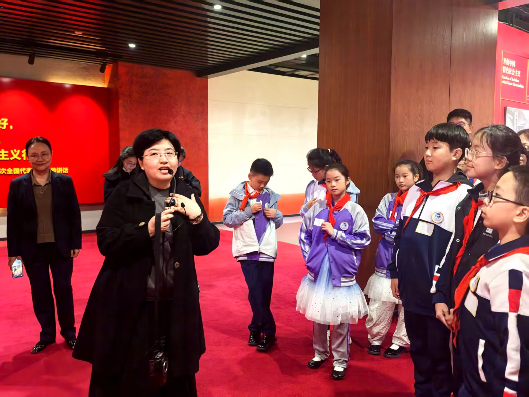 戴雪丽同大学生辅导员面向中小学生代表讲述了一堂生动的“场馆里的思政课”。课程以学习《共产党宣言》为主线,师生们通过展板讲解与代表发言等形式,生动诠释了信仰的力量与时代青年的使命担当。