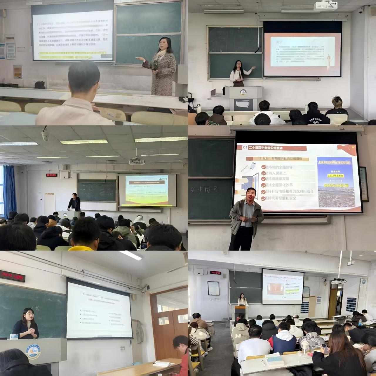 孙倩倩、薛君、闫鑫淇、邵长威等14位教研室骨干教师,紧紧围绕学习贯彻习近平总书记在党的二十届四中全会上的重要讲话精神,聚焦党的二十届四中全会召开的重大现实意义与深远历史意义,深入阐释“十五五”时期在全面建设社会主义现代化国家进程中的关键定位,全面解读“十五五”时期经济社会发展的指导思想、目标任务、战略部署与政策举措。宣讲覆盖四方校区与崂山校区共67余个本科生及研究生班级,实现跨校区、多层次的精准传达与全面浸润,推动党的创新理论有机融入思政课堂、直达青年内心。