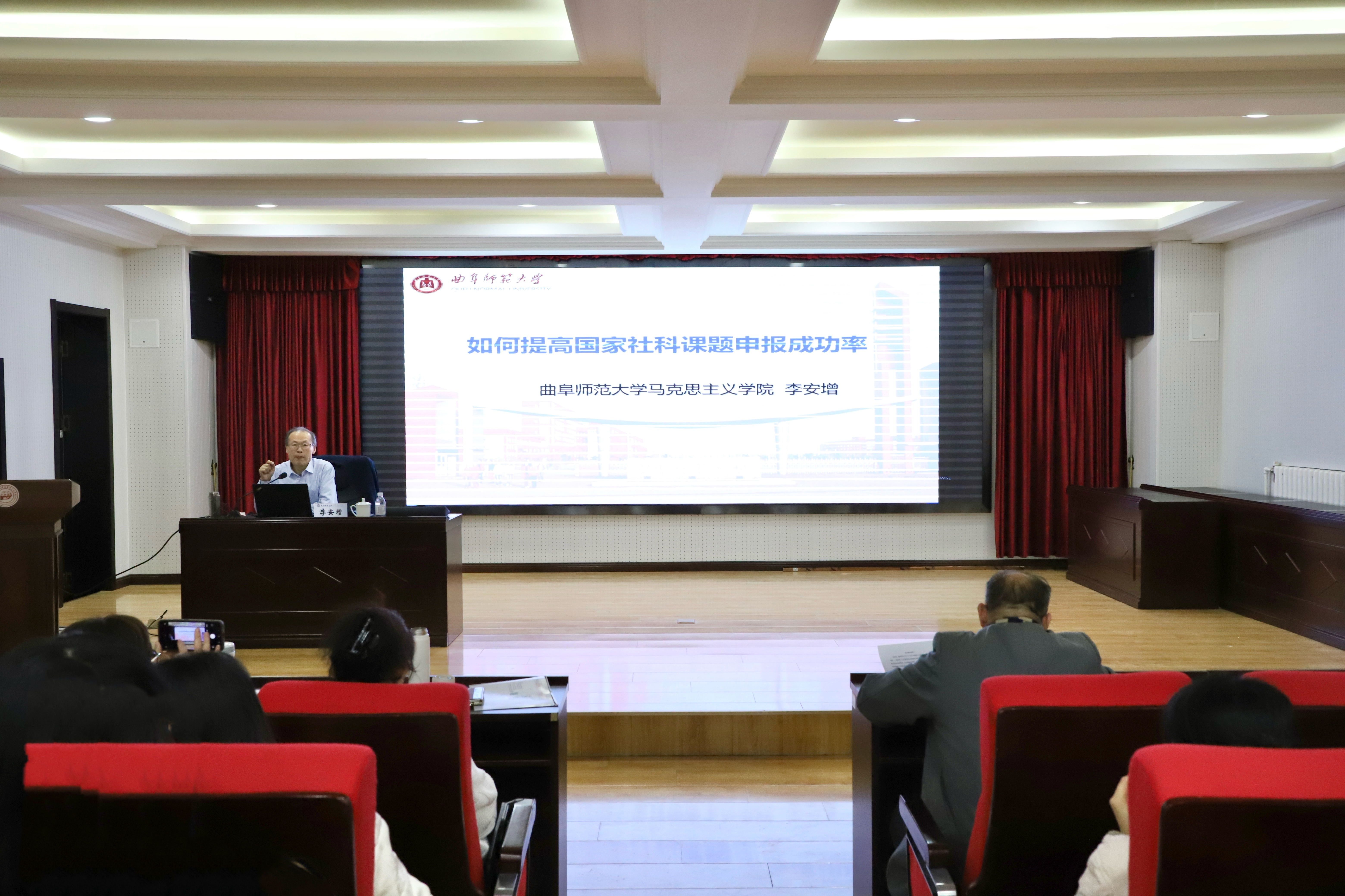 11月18日下午,太阳集团城娱8722于学院报告厅举办学习贯彻党的二十届四中全会精神学术报告暨国家社科基金辅导报告。学院特邀曲阜师范大学马克思主义研究院院长、国家社科基金评委李安增作专题报告。太阳集团城娱8722全体师生参加此次会议,会议由太阳集团城娱8722院长曹胜主持。
