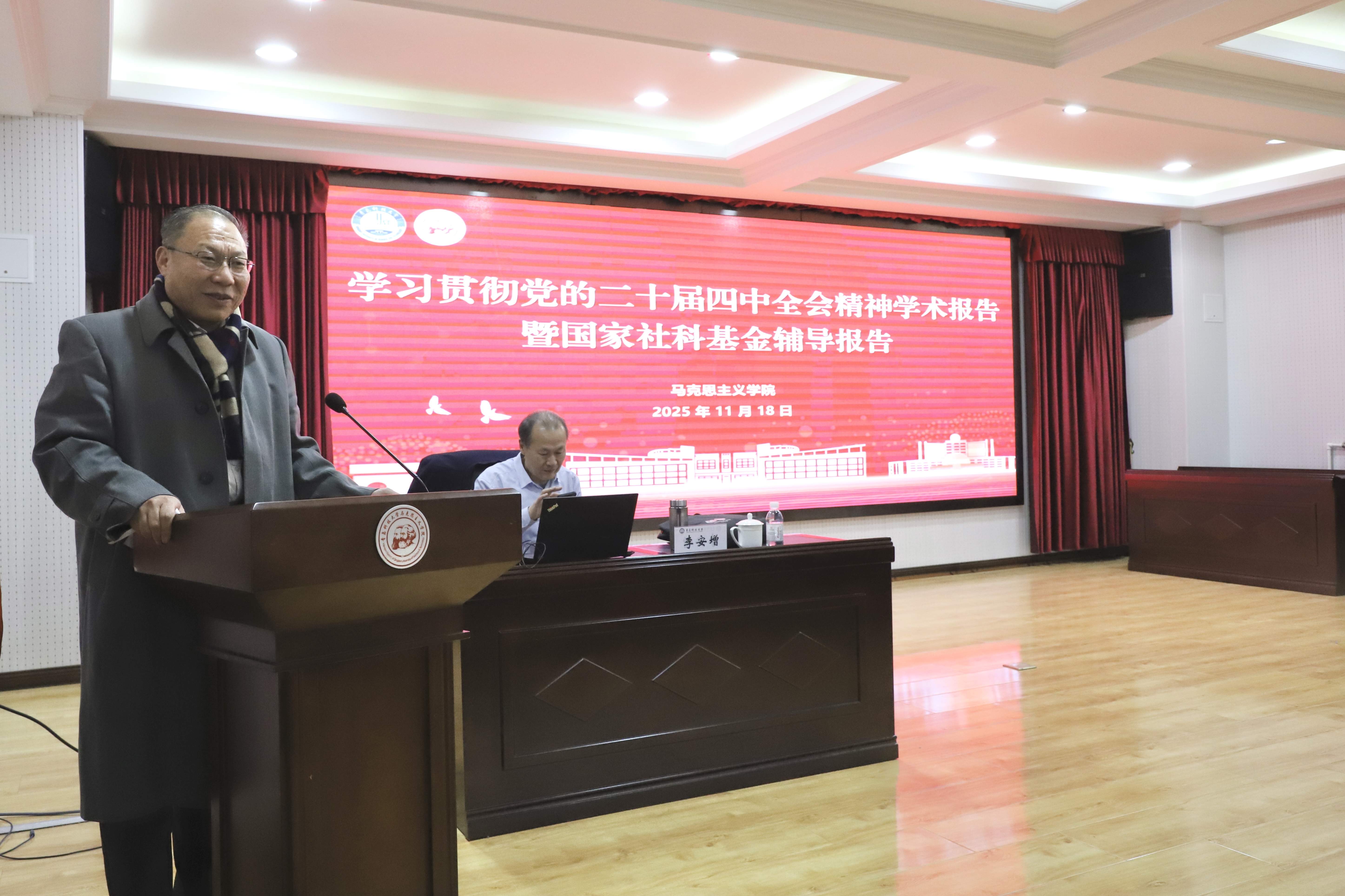 曹胜对李安增的精彩报告表示衷心感谢,并指出本场报告兼具理论高度与实践深度,对学院师生深刻把握党的创新理论、深化中国式现代化研究、提升科研项目申报质量具有重要指导意义。下一步,学院将以此为契机,进一步强化理论武装,深化学术研究,推动教学创新,引导全体师生自觉将党的二十届四中全会精神融入教育教学与科研实践全过程,持续夯实学科基础,努力产出更多高质量研究成果。