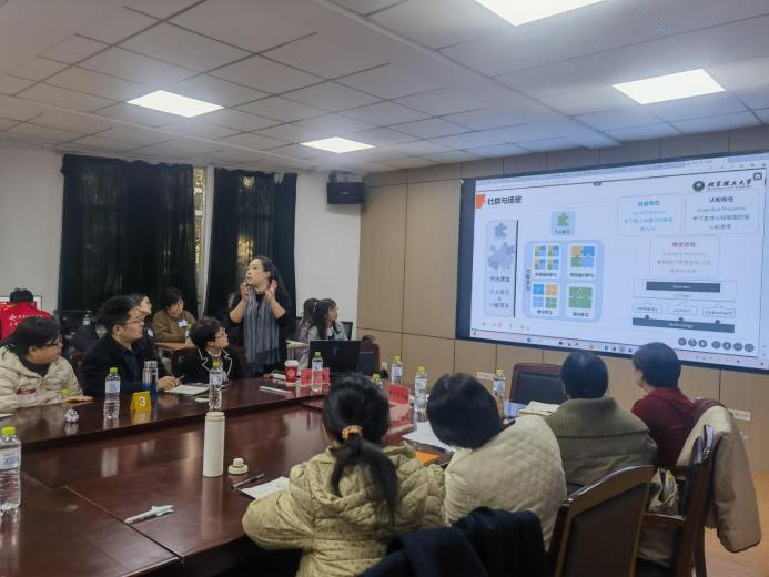 两位专家摒弃了传统单向汇报模式,通过精心设计的互动环节,组织了一场沉浸式的工作坊。辛怡老师从“学生思维离场的原因分析”切入,引导大家探讨如何提升课堂参与度,并从教学内容、活动、技术及教师能力等多维度进行了剖析,阐述了如何通过教学设计实现情感、思维、行为和身体的四重在场。随后,她带领全体老师现场体验了“立体拼图”小组活动,各小组分工协作、热烈讨论,现场气氛活跃,生动展现了高效课堂的应有面貌。