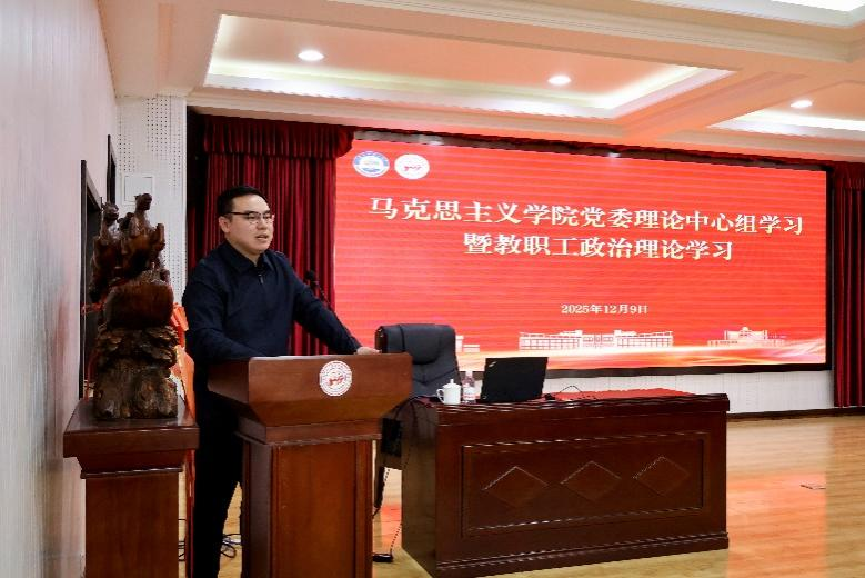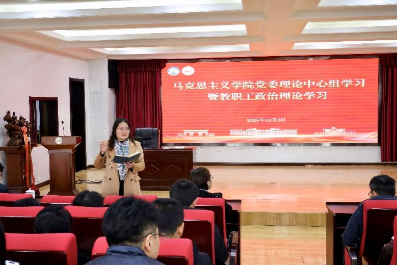 会上,李卉传达了中共山东省第十二届委员会第十次会议精神和中共青岛市委十三届九次全体会议精神。同时,针对党委换届工作,指出全体党员要认真审阅相关材料并积极反馈意见。随后,她鼓励教师积极参与学校2025年度思想政治教育先进集体和个人的评选,为个人发展与学院建设积蓄力量,指出全体教师必须坚守师德师风底线,在持续学习中筑牢理想信念,在课堂内外以身作则,全面关注学生的健康发展,落实立德树人的根本任务。最后,她强调学习贯彻党的二十届四中全会精神是当前及今后一个时期的重要政治任务,全面掌握“十五五”规划的方向与要求,将相关精神与政策动向自觉融入科研选题与课堂教学,持续提升思政课的吸引力与感染力。