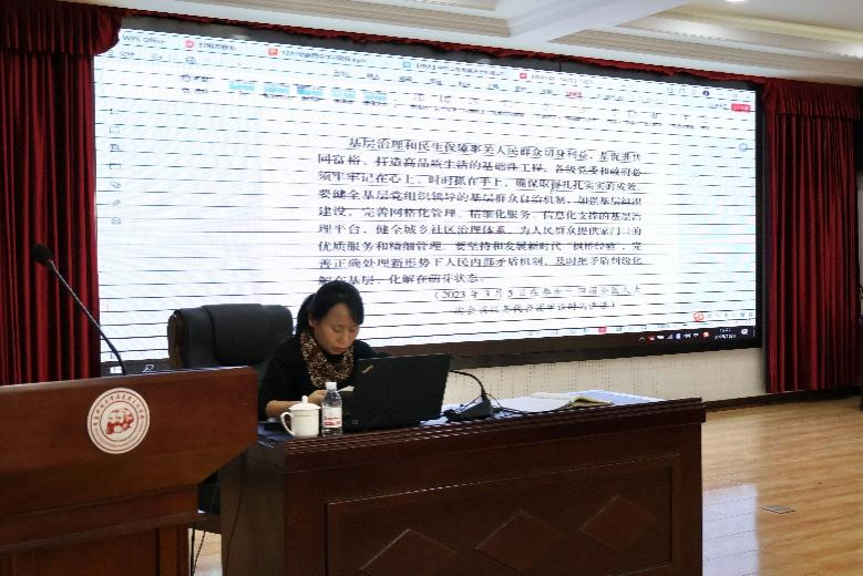 李卉、陈乐分别领学了《习近平谈治国理政》第五卷中的《推动新时代社会工作高质量发展》与《完善基层治理体系,筑牢社会和谐稳定基础》,深刻把握习近平新时代中国特色社会主义思想在社会建设与基层治理方面的核心要义,进一步夯实了教学与研究的理论根基。