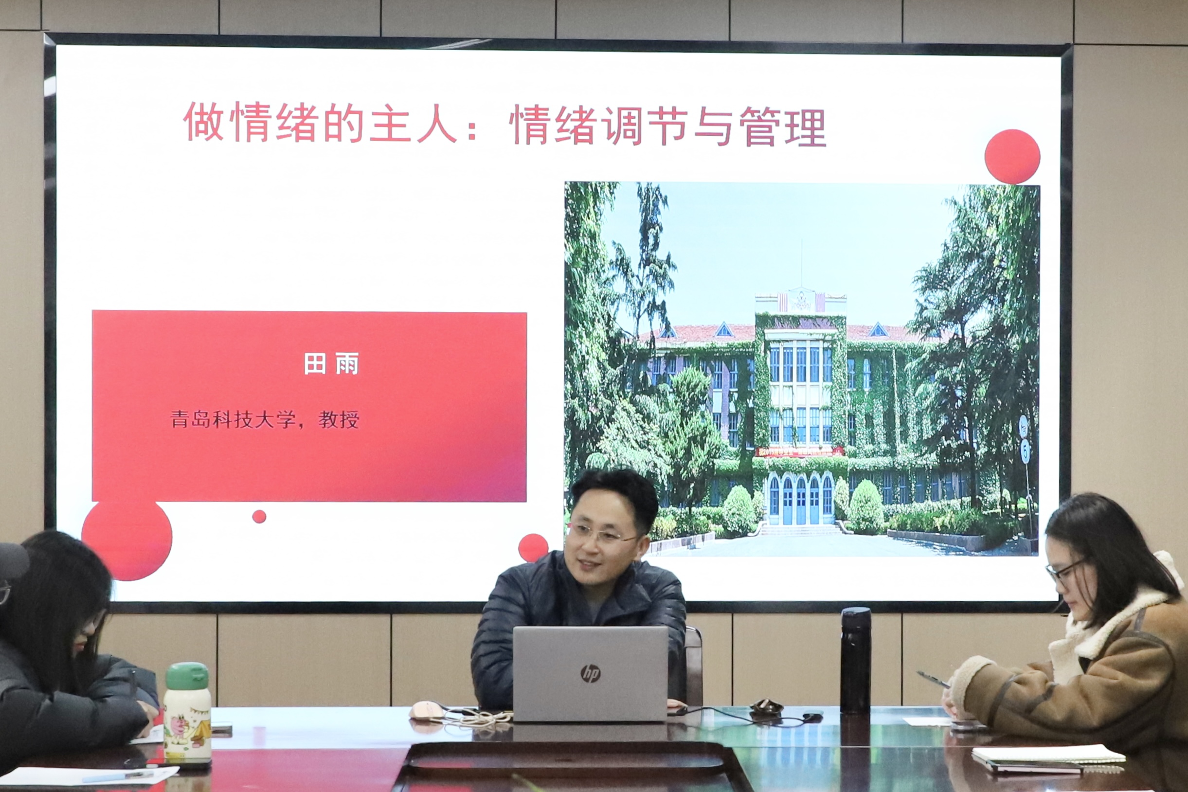 田雨就学习生活中的压力通过学理分析与案例进行解读,强调了压力和情绪对个人幸福感和生活质量的影响,提出通过自我肯定、提高自信心、寻求社会支持等方法来调节和管理;分享了情境的评价、转移注意力、调整认知等减轻压力的策略;肯定了建立和维护良好的人际关系和社会支持系统对于个体情绪调节和压力管理的积极作用,提倡要关注生活中的美好时刻,积极面对挑战,以此促进个人的心理健康和幸福。在交流环节,各小组同学就自己在生活学习上的压力与困惑和老师进行交流讨论,田雨为同学们提供了可行的参考建议。