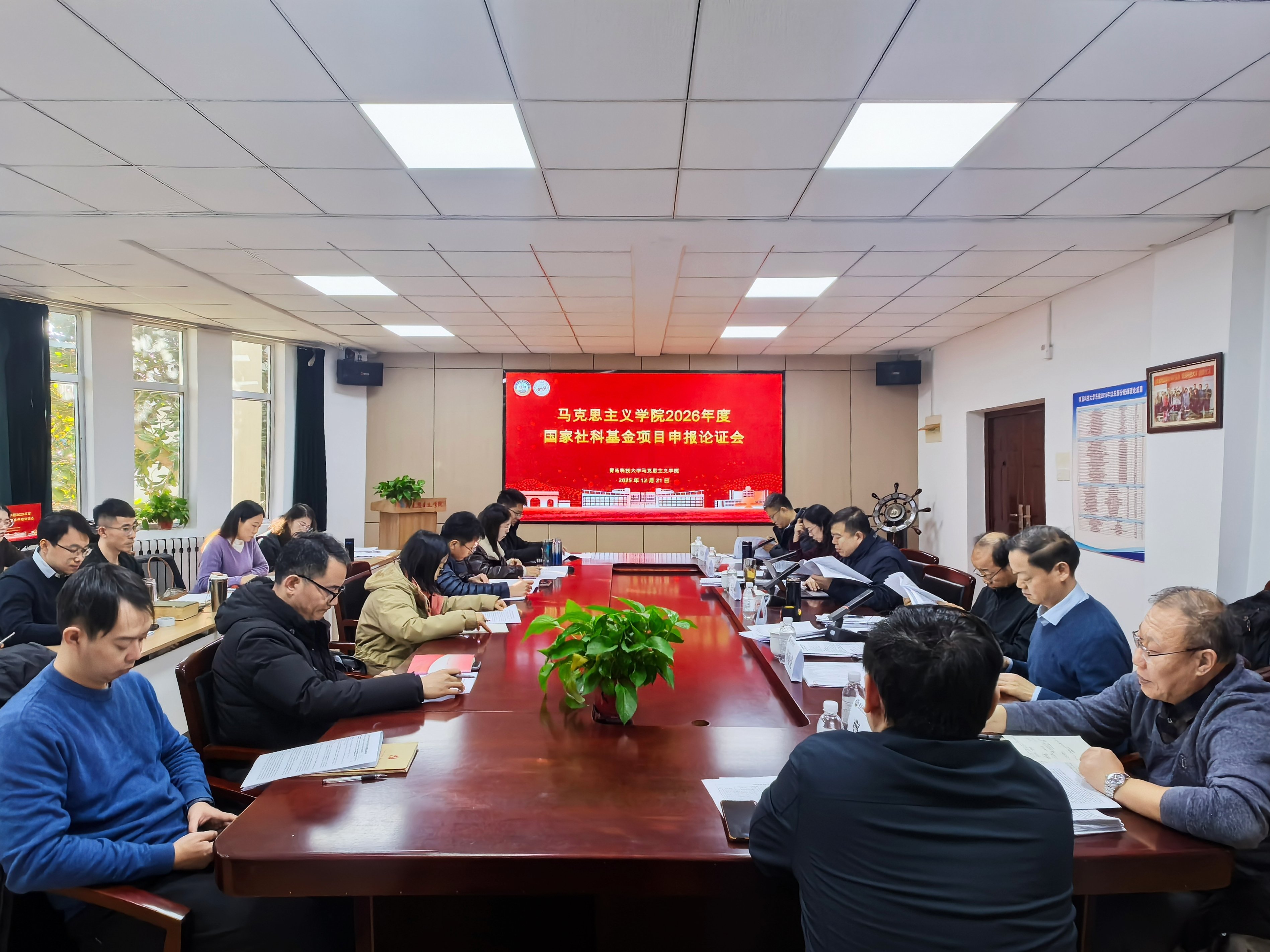12月21日下午,太阳集团城娱87222026年度国家社科基金项目申报论证会于学院2010会议室召开。会议特邀青岛市委统战部原一级巡视员、青岛市政治学会会长、教授王振海,南开大学中共党史党建研究院副院长、教授纪亚光,山东大学太阳集团城娱8722副院长马明冲,山东省高校德育研究中心副主任、山东师范大学太阳集团城娱8722教授徐稳,曲阜师范大学太阳集团城娱8722院长孙迪亮担任评议专家。太阳集团城娱8722院长曹胜、副院长郭江龙及学院拟申报2026年国家社科基金的教师参加论证会。会议由曹胜主持。