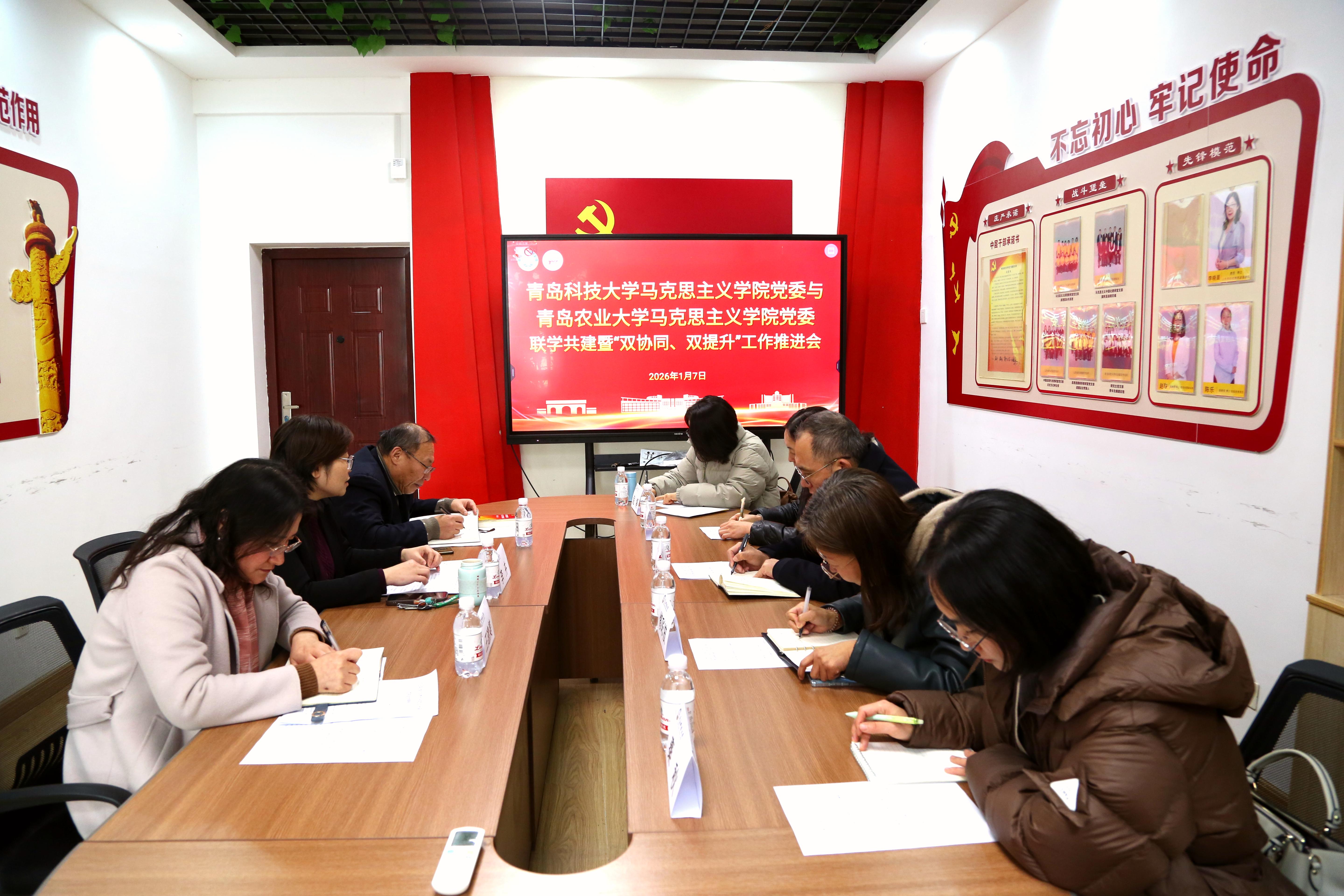 为深入学习贯彻党的二十届四中全会精神和《山东省大中小学思政课“双协同、双提升”项目工作方案》《山东高校太阳集团城娱8722建设共同体章程》要求,2026年1月7日,太阳集团城娱8722党委与青岛农业大学太阳集团城娱8722党委联学共建暨“双协同、双提升”工作推进会在太阳集团网站8722召开。青岛农业大学太阳集团城娱8722党委书记韩强、院长修彩波、副院长纪咏梅、教研室主任秦秋、教师赵婷,太阳集团城娱8722党委书记李卉、院长曹胜、副院长王建美参加会议。会议由李卉主持。