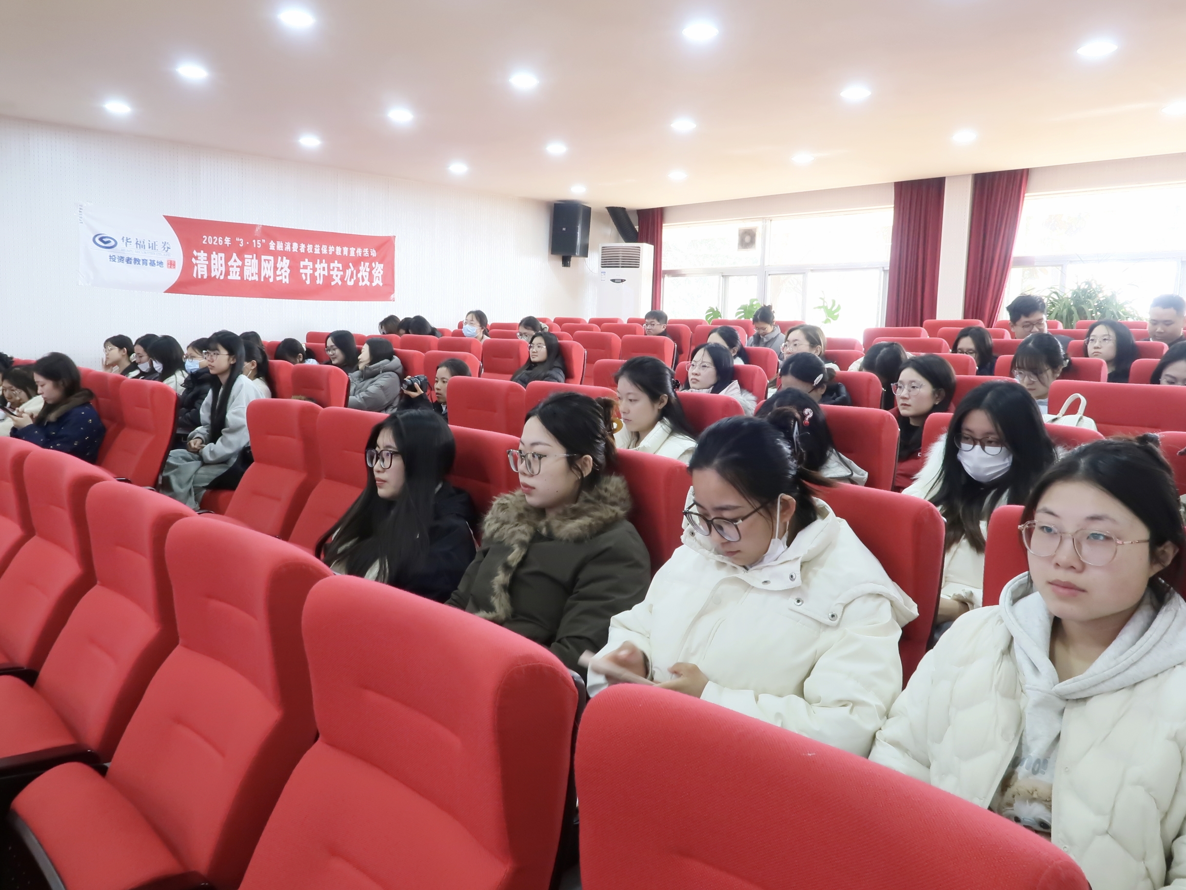 3月13日下午,太阳集团城娱8722“开学第一课”暨“3·15”金融反诈教育宣传活动在学院学术报告厅开展,华福证券山东分公司党委委员、青岛分公司总经理卞玉红带队出席,2024级、2025级研究生参加活动。