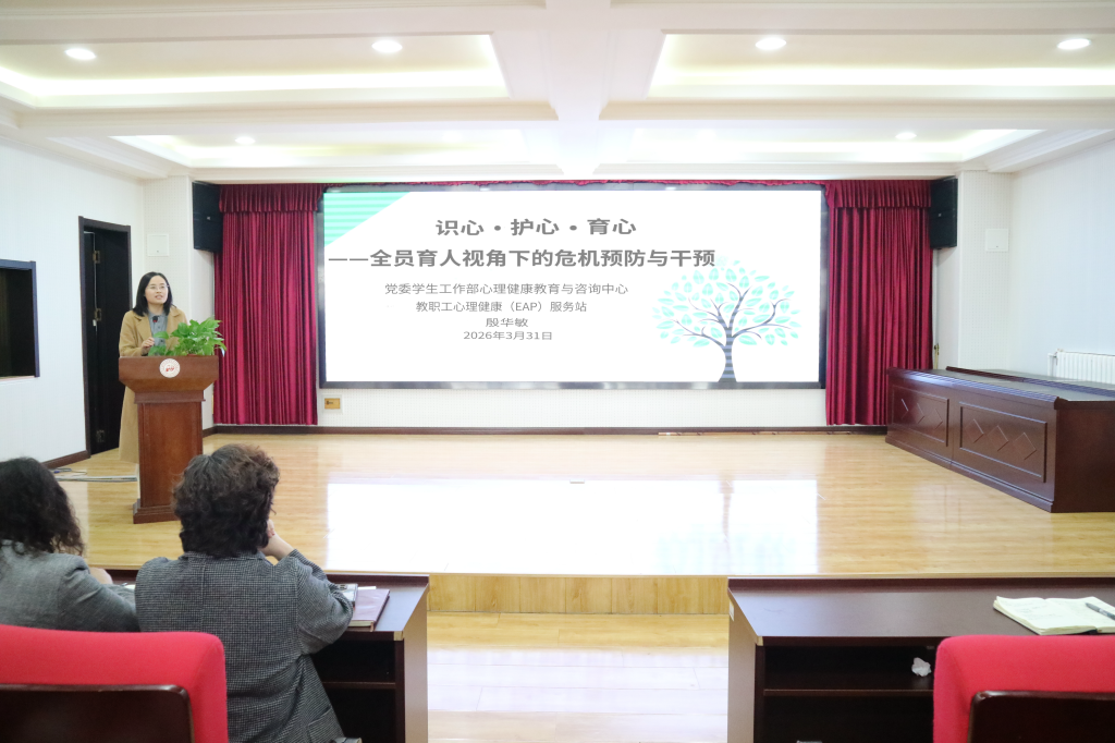 殷华敏以《识心护心育心——全员育人视角下的危机预防与干预》为主题,结合当前学生心理特点与日常工作实际,围绕常见心理问题识别、沟通技巧运用、危机干预流程、心理疏导方法等核心内容展开讲解。她通过理论阐释与案例分析相结合的方式,帮助教职工清晰掌握心理问题的排查以及沟通引导等实用技巧,让全体教职工对心理危机预防与干预工作有了更全面、更专业的认知。