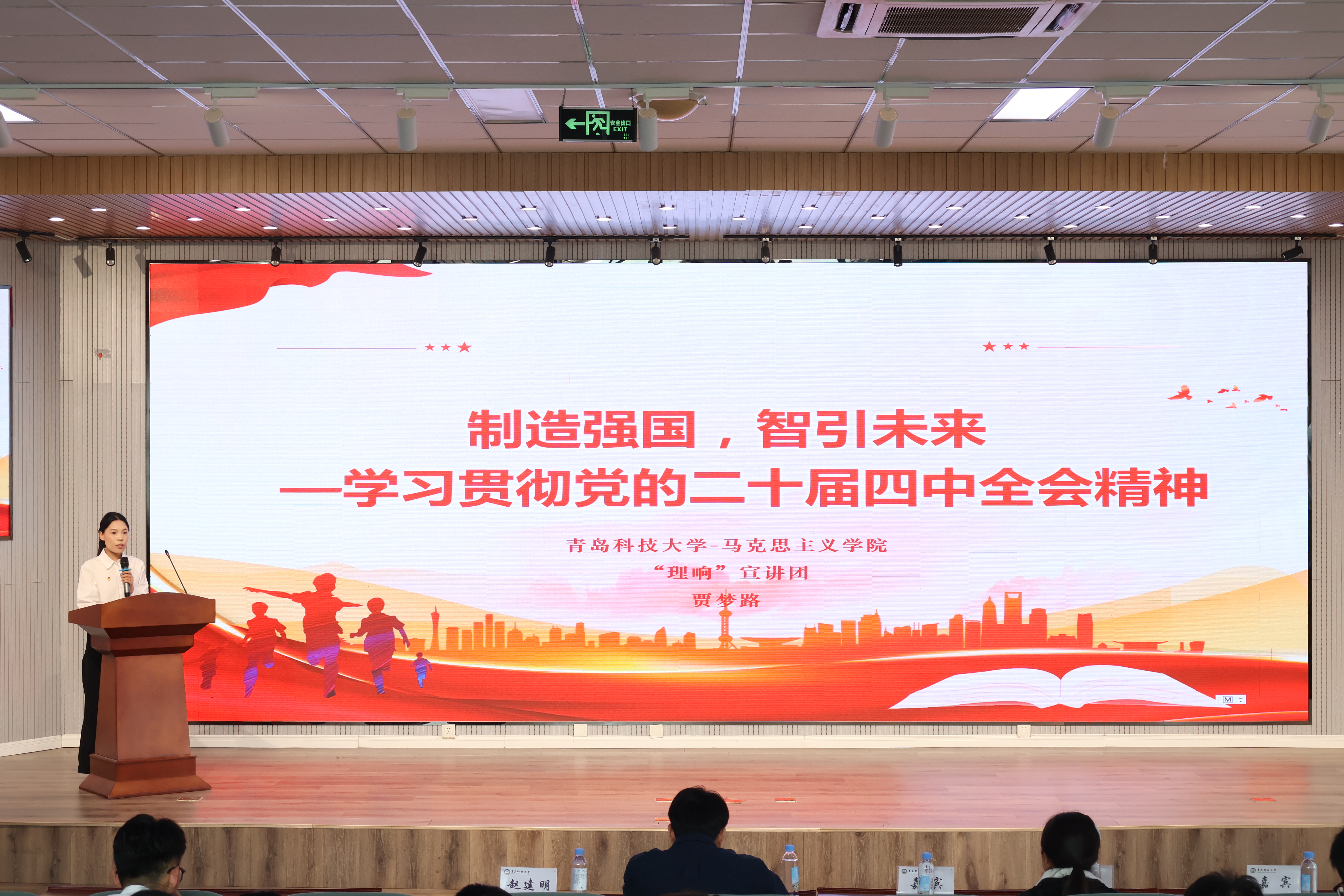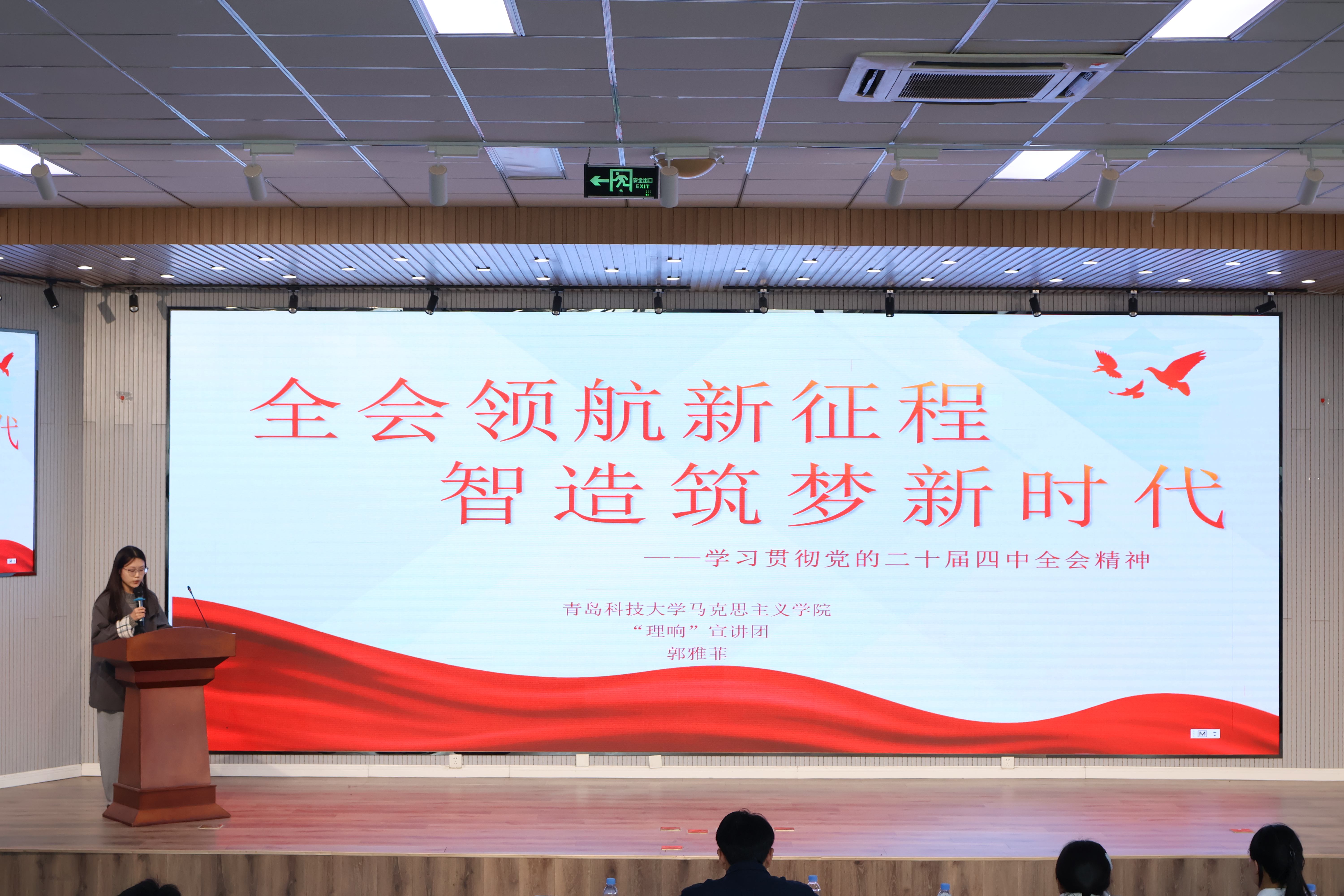 宣讲团成员郭雅菲、贾梦路分别以《全会领航新征程,智造筑梦新时代》和《制造强国 智引未来—学习贯彻党的二十届四中全会精神》为主题,结合智能制造学院的专业实际,进行学习贯彻党的二十届四中全会精神主题宣讲。