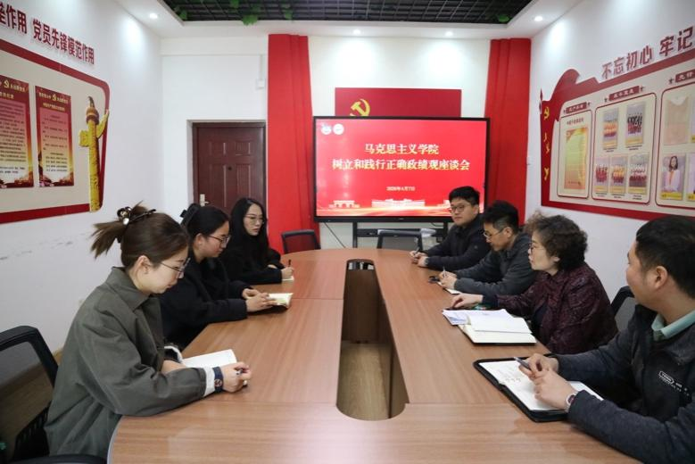 4月7日,太阳集团城娱8722于2011会议室开展树立和践行正确政绩观学习教育师生座谈会。学院党委书记李卉、研究生党支部书记田雨、研究生会骨干参加座谈会,会议由李卉主持。